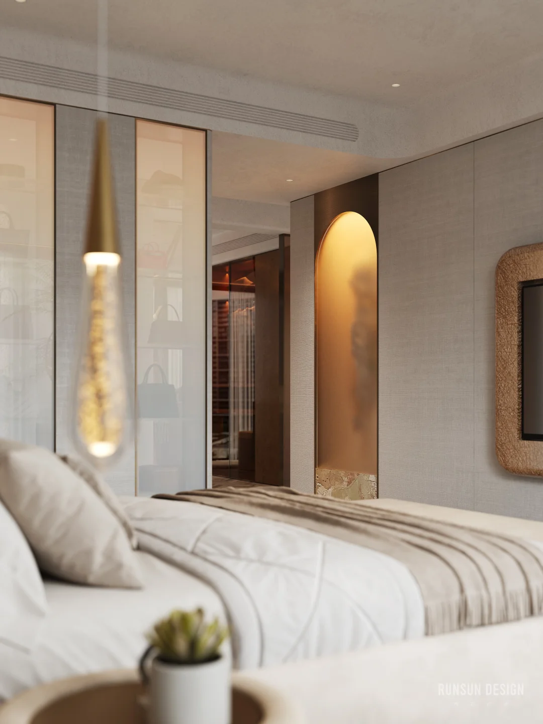 不锈钢上顶,融合轻奢x赛车的20平镜像主卧