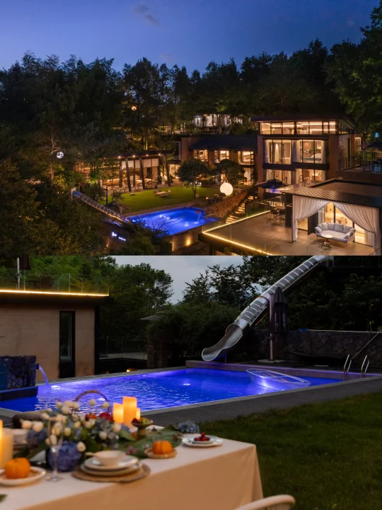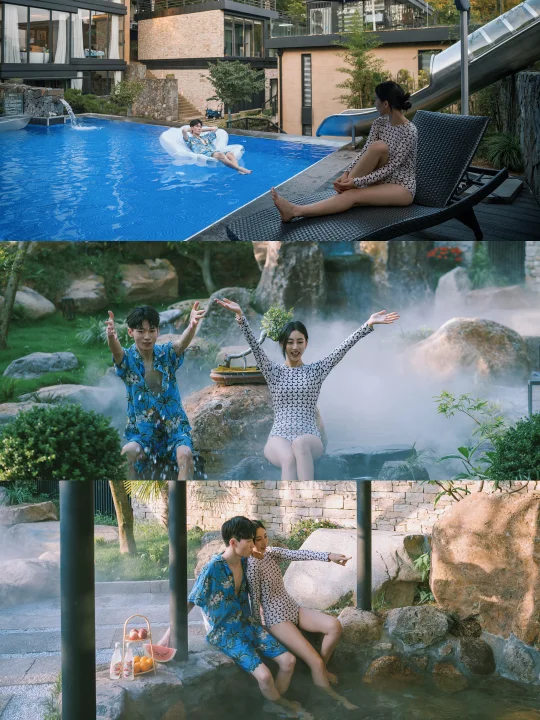 ▪️ 夜景超出片:吃完晚餐在无边泳池边散步看个露天电影,灯光倒映在水里像碎钻💎随手拍都是“假装在国外”系列! · 📍【实用Tips】 1️⃣ 交通:杭州自驾2h,上海4h,沿途42道弯的“浙西小川藏线”仿佛在看头文字D般刺激,老司机超爱~