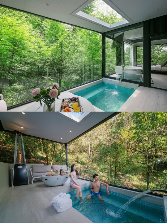 ▪️ 冷泉私汤+戴森配置:树屋自带庭院私汤,泡着500米深的山泉水,抬头就是星空🌌房间里迪士尼同款的丝涟床垫、智能马桶、戴森吹风机,山野里也能享五星体验~