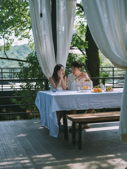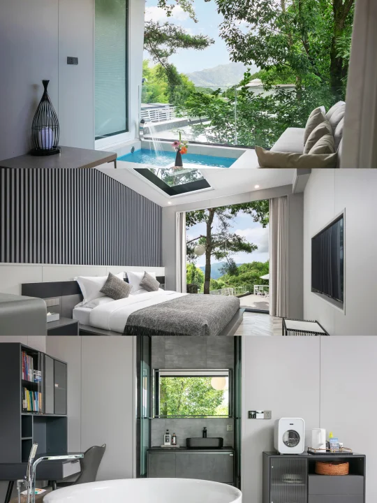 2️⃣ 房型:树屋🉑选听涛、望月、归巢、观星,带独立露台和私汤 ·