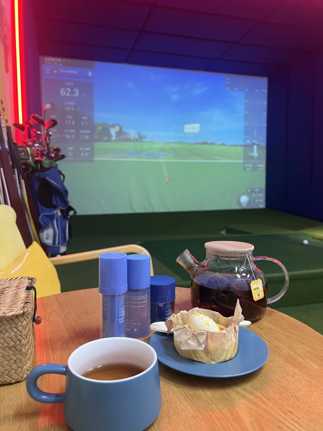 今天是高尔夫体验日, 园区奥体也有高尔夫体验馆了~ 停车方便上楼即达 馆内环境舒适温馨 教练讲解耐心细致💡 从球杆介绍到动作分解和连贯动作 初学者也轻松好上手🫴 高尔夫小白体验感拉满🔋 情不自已入坑啦⛳️ 在工作和生活当中运动是完美充电站⛽️ 消耗卡路里同时获得多巴胺内啡肽 太快乐啦🫰 课后还有小蛋糕和热茶体贴🥹 身体加速了新陈代谢后皮肤护理也不拉下 有专业老师介绍和安排护肤环节💐 保养皮肤刻不容缓 快哉快哉!