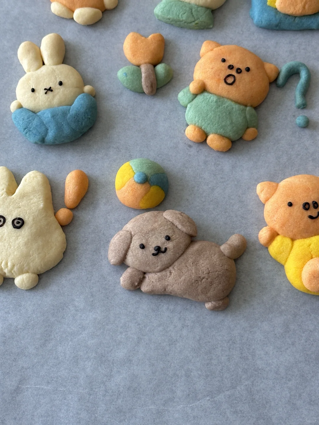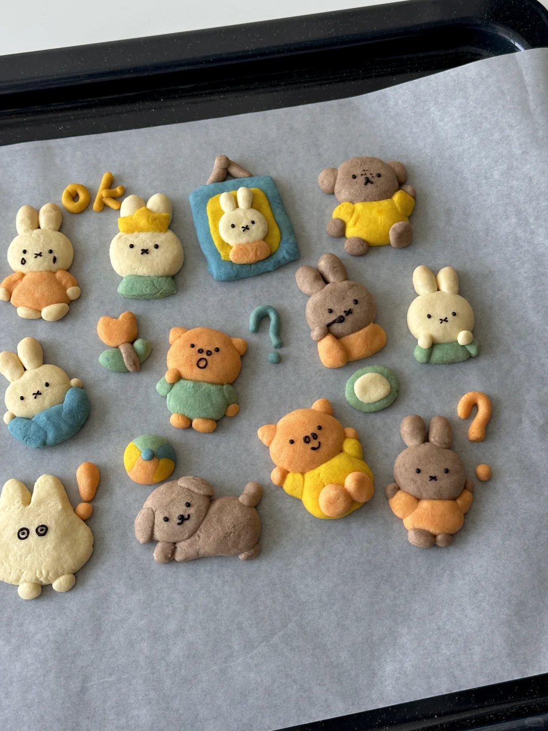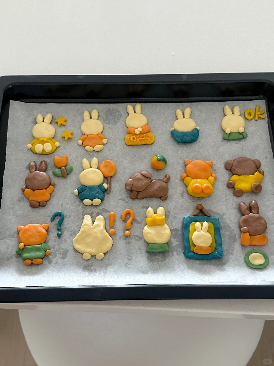 💙💛💚🧡 所需材料: 黄油100g,糖粉 50g,盐1g,低筋面粉 170g,常温全蛋液25g左右 制作步骤: 1️⃣室温软化黄油 2️⃣加入糖粉,盐,混合均匀 3️⃣加入低筋面粉翻拌均匀,再少量多次加入蛋液,可揉成软软的面团即可 4️⃣面团分块上色 5️⃣有耐心的捏出形状,捏好后冰箱冷藏片刻 6️⃣烤箱预热,150°烤20 分钟左右,用巧克力酱画出五官