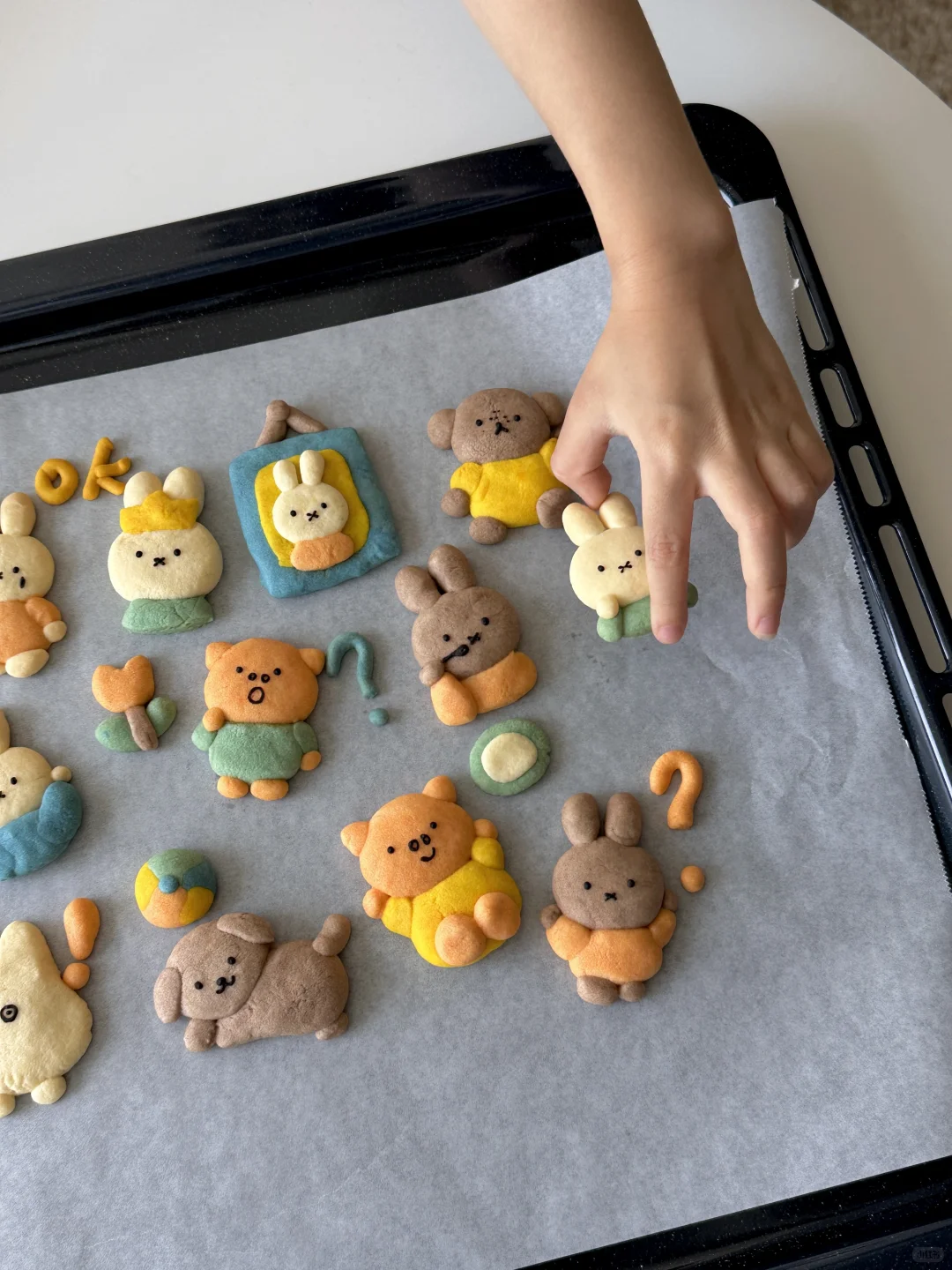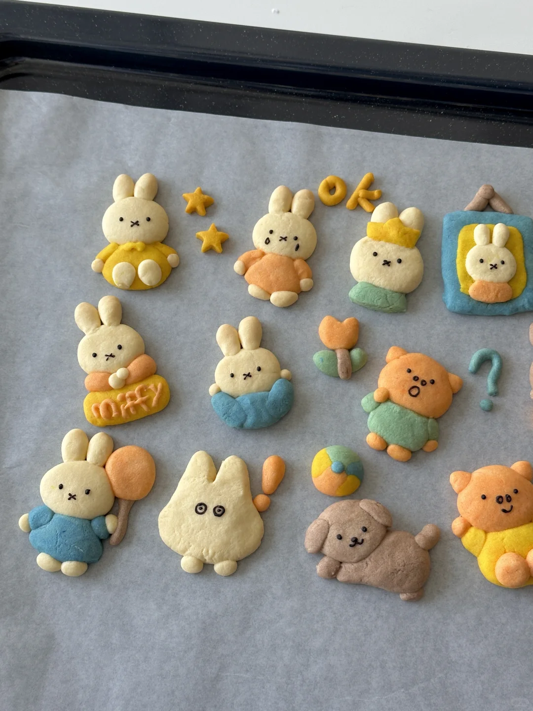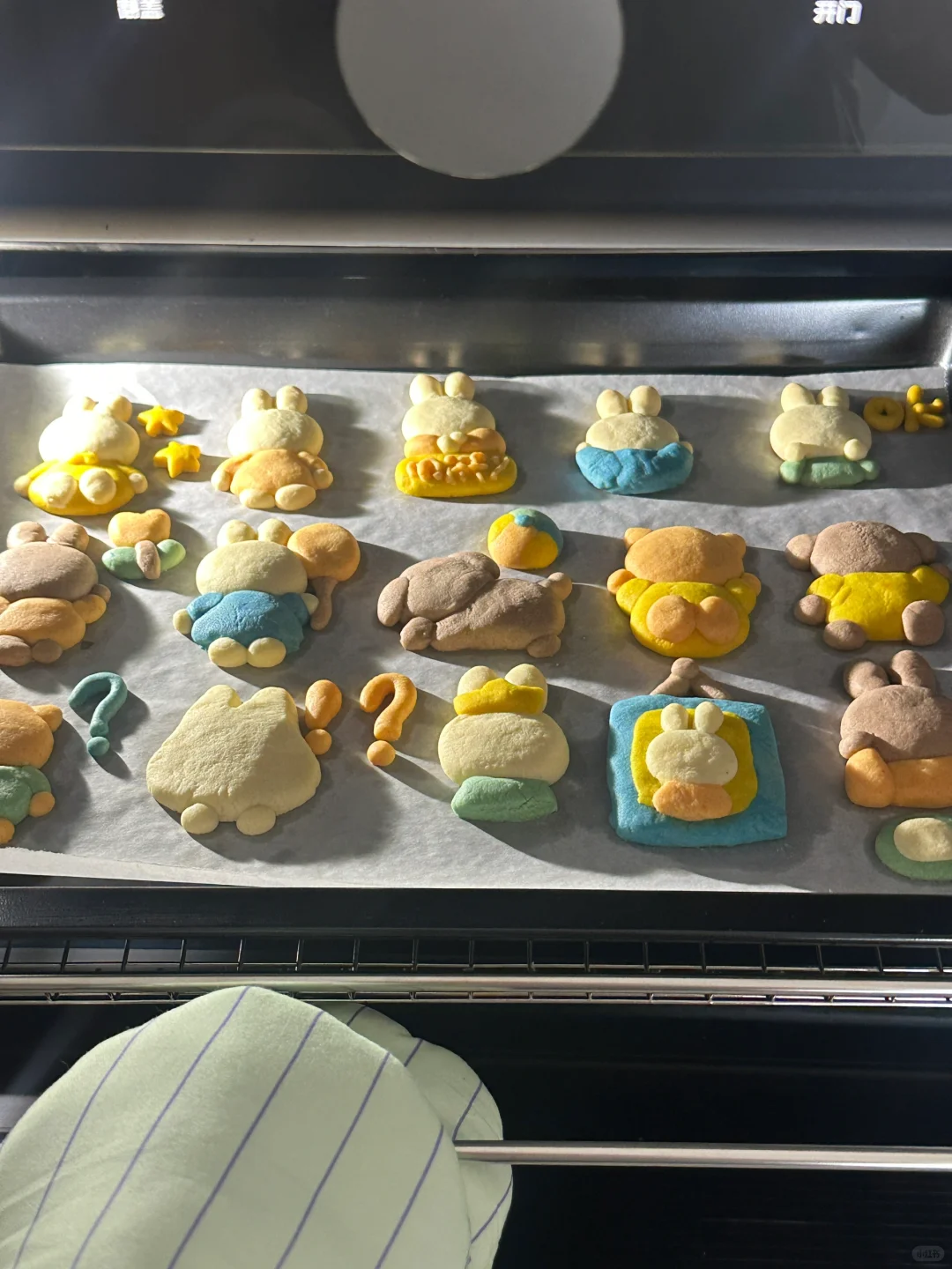 💙💛💚🧡 所需材料: 黄油100g,糖粉 50g,盐1g,低筋面粉 170g,常温全蛋液25g左右 制作步骤: 1️⃣室温软化黄油 2️⃣加入糖粉,盐,混合均匀 3️⃣加入低筋面粉翻拌均匀,再少量多次加入蛋液,可揉成软软的面团即可 4️⃣面团分块上色 5️⃣有耐心的捏出形状,捏好后冰箱冷藏片刻 6️⃣烤箱预热,150°烤20 分钟左右,用巧克力酱画出五官