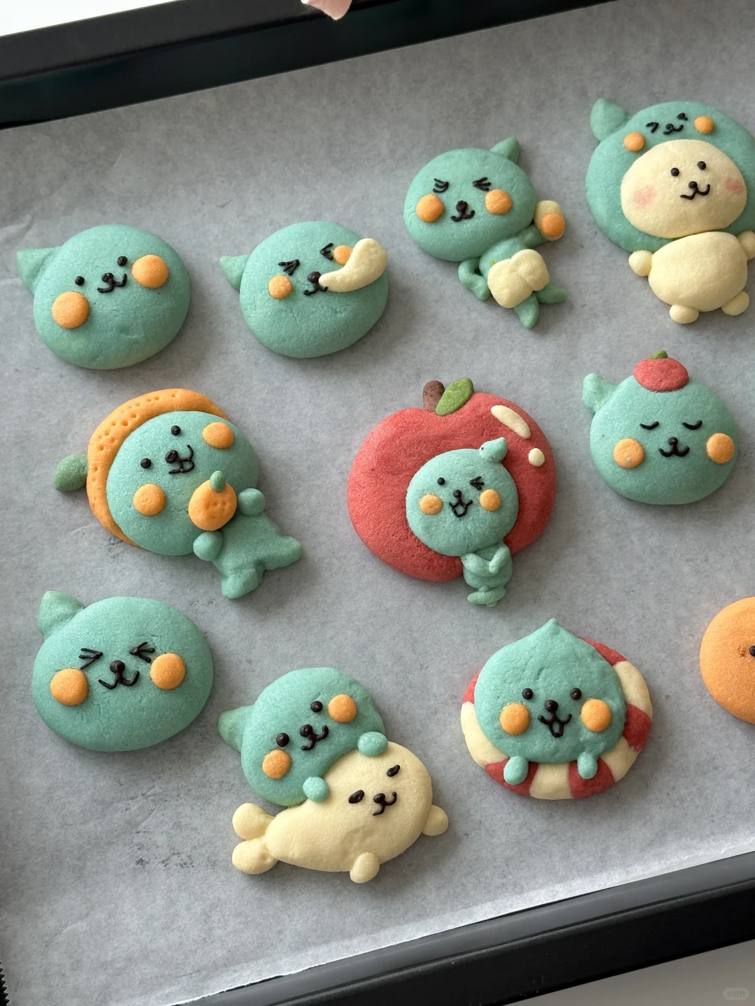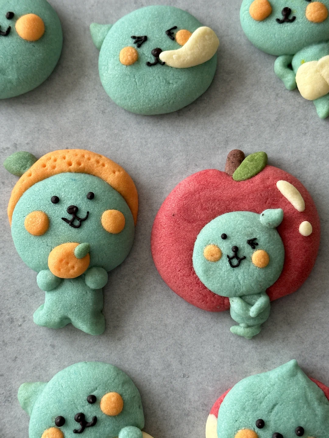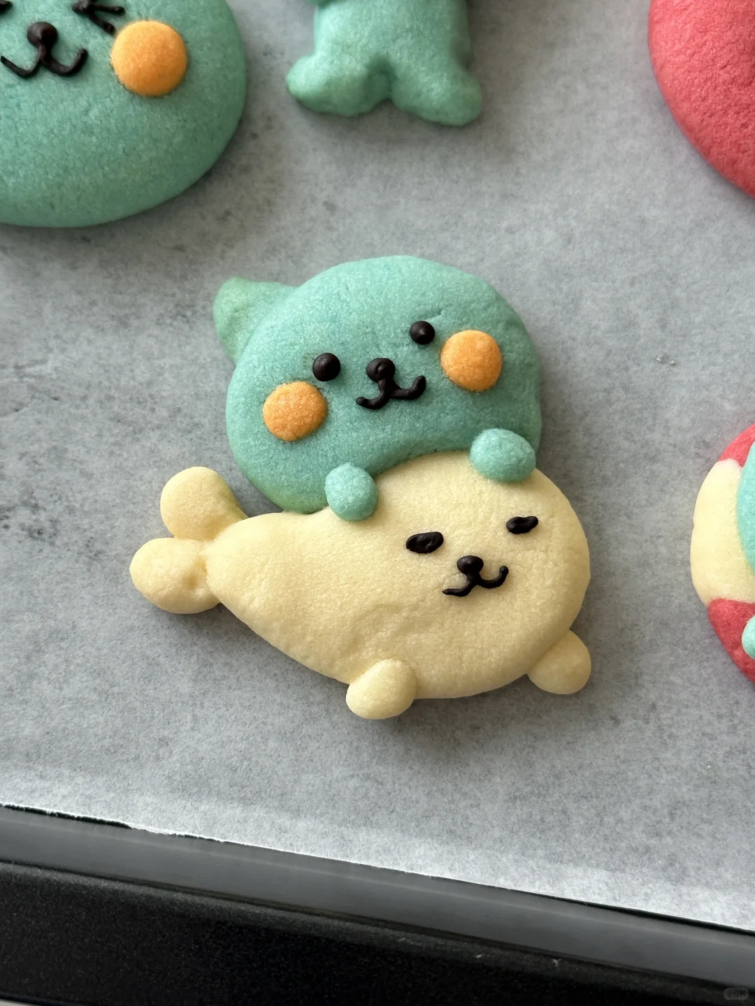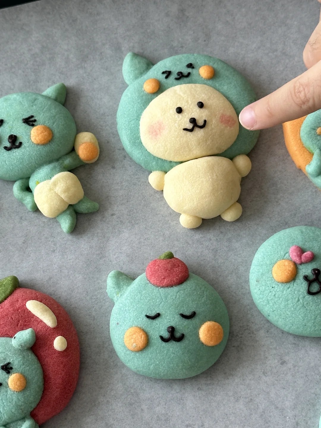 数不清做过多少可爱的小饼干啦 所需材料: 黄油100g,糖粉 50g,盐1g,低筋面粉 170g,常温全蛋液25g左右 制作步骤: 1️⃣室温软化黄油 2️⃣加入糖粉,盐,混合均匀 3️⃣加入低筋面粉翻拌均匀,再少量多次加入蛋液,可揉成软软的面团即可 4️⃣面团分块上色 5️⃣有耐心的捏出形状,捏好后冰箱冷藏片刻 6️⃣烤箱预热,150°烤20 分钟左右,用巧克力酱画出五官