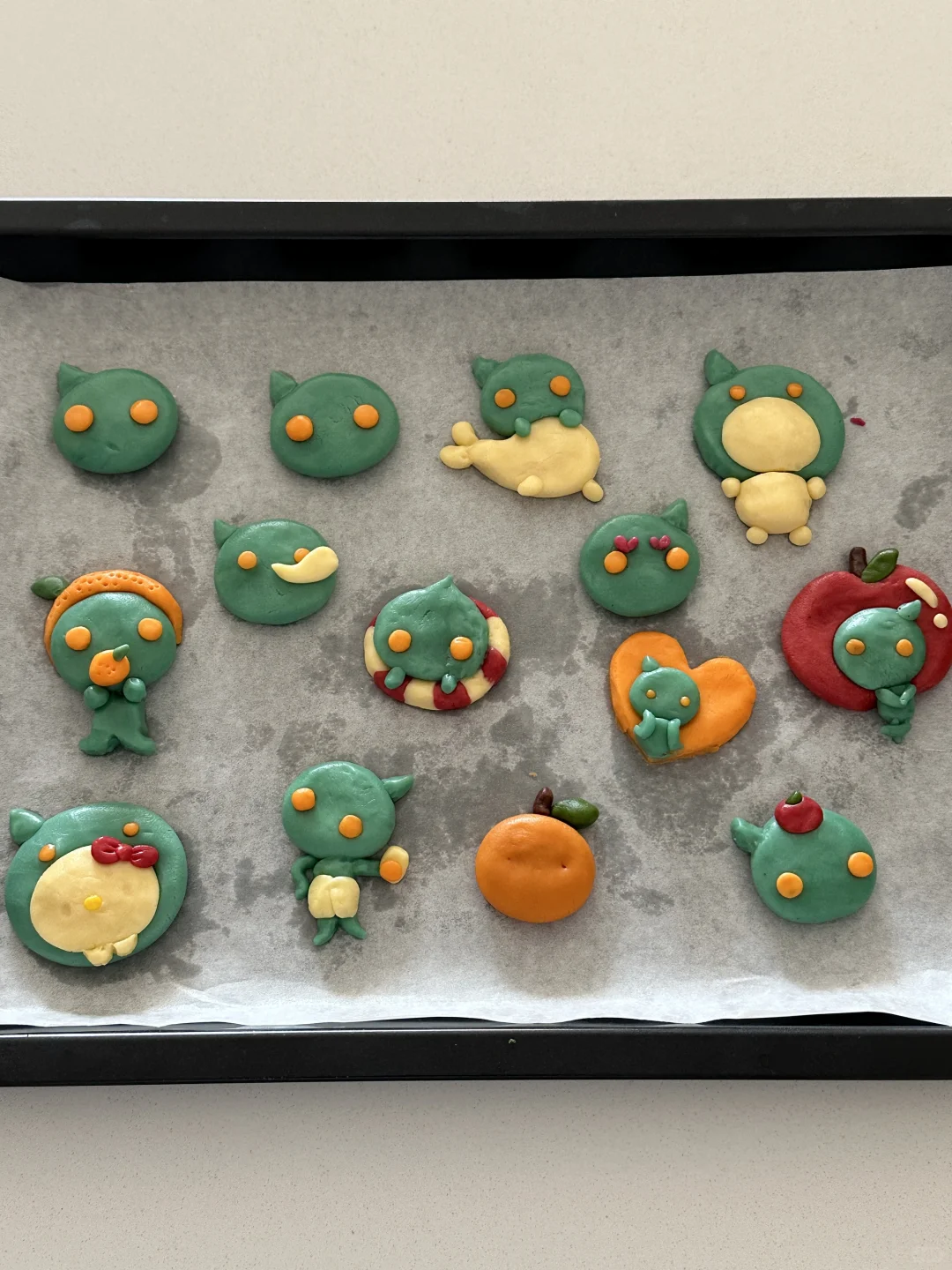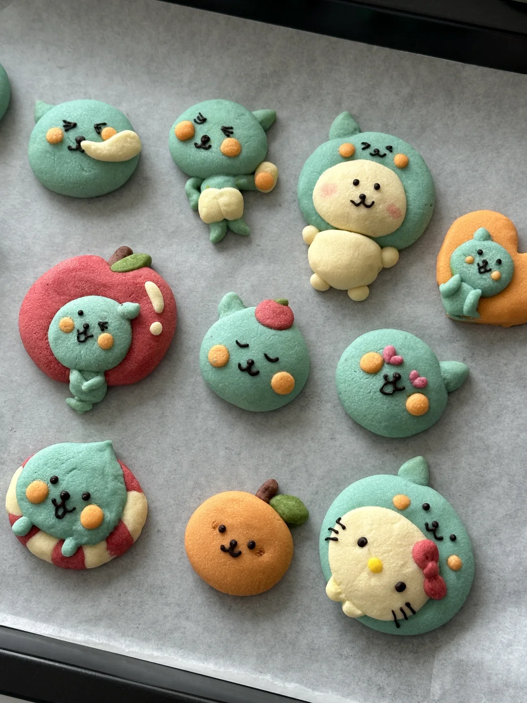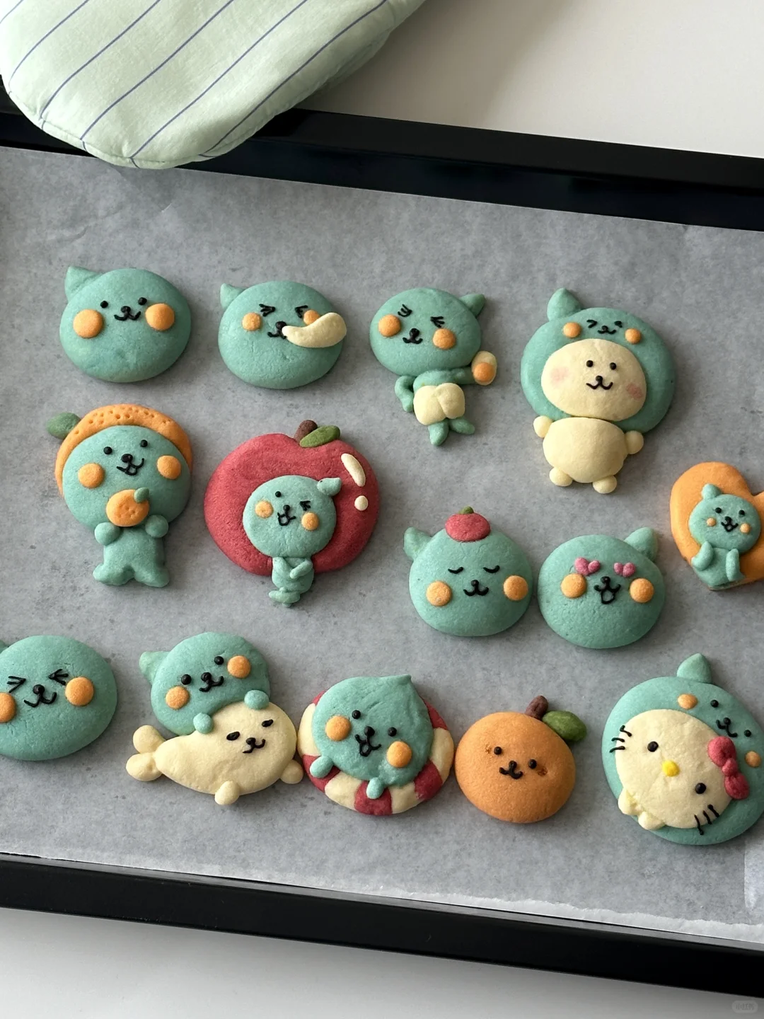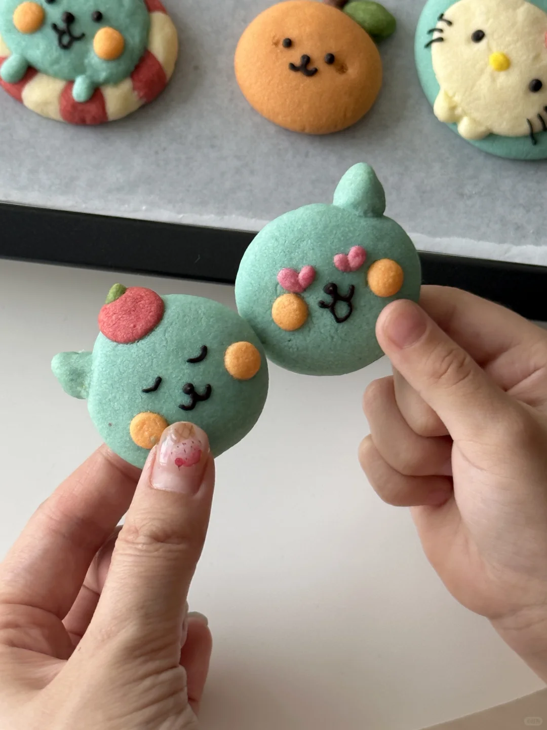 数不清做过多少可爱的小饼干啦 所需材料: 黄油100g,糖粉 50g,盐1g,低筋面粉 170g,常温全蛋液25g左右 制作步骤: 1️⃣室温软化黄油 2️⃣加入糖粉,盐,混合均匀 3️⃣加入低筋面粉翻拌均匀,再少量多次加入蛋液,可揉成软软的面团即可 4️⃣面团分块上色 5️⃣有耐心的捏出形状,捏好后冰箱冷藏片刻 6️⃣烤箱预热,150°烤20 分钟左右,用巧克力酱画出五官