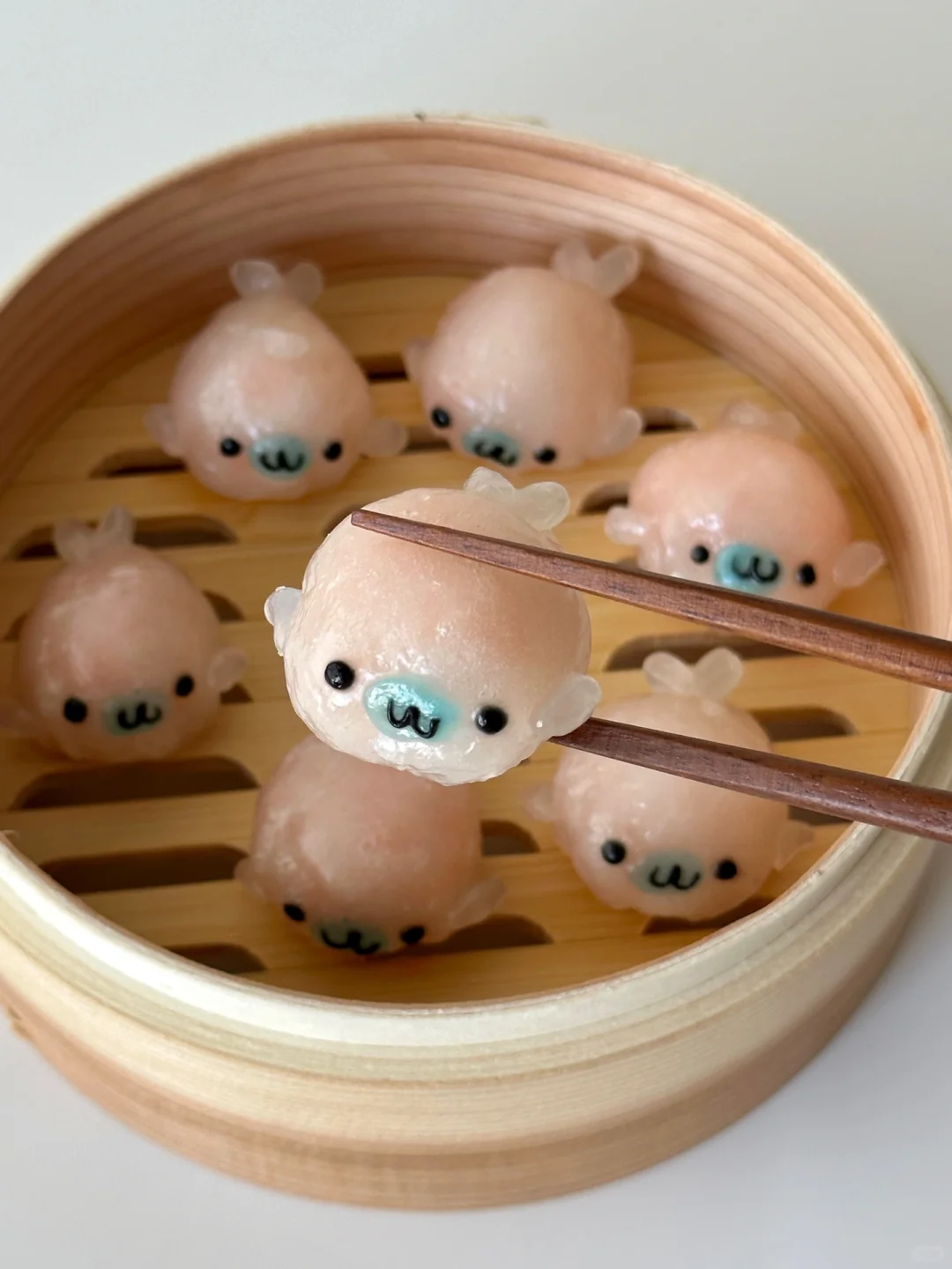 可以吃的捏捏~迷你豆芝麻水晶虾饺