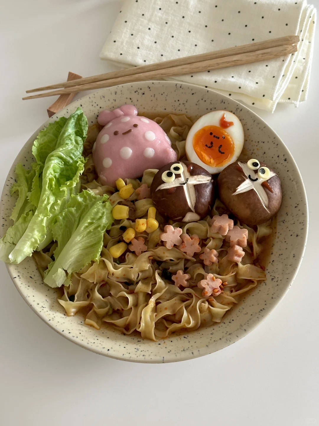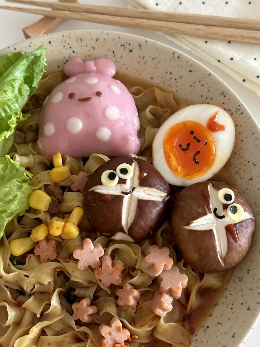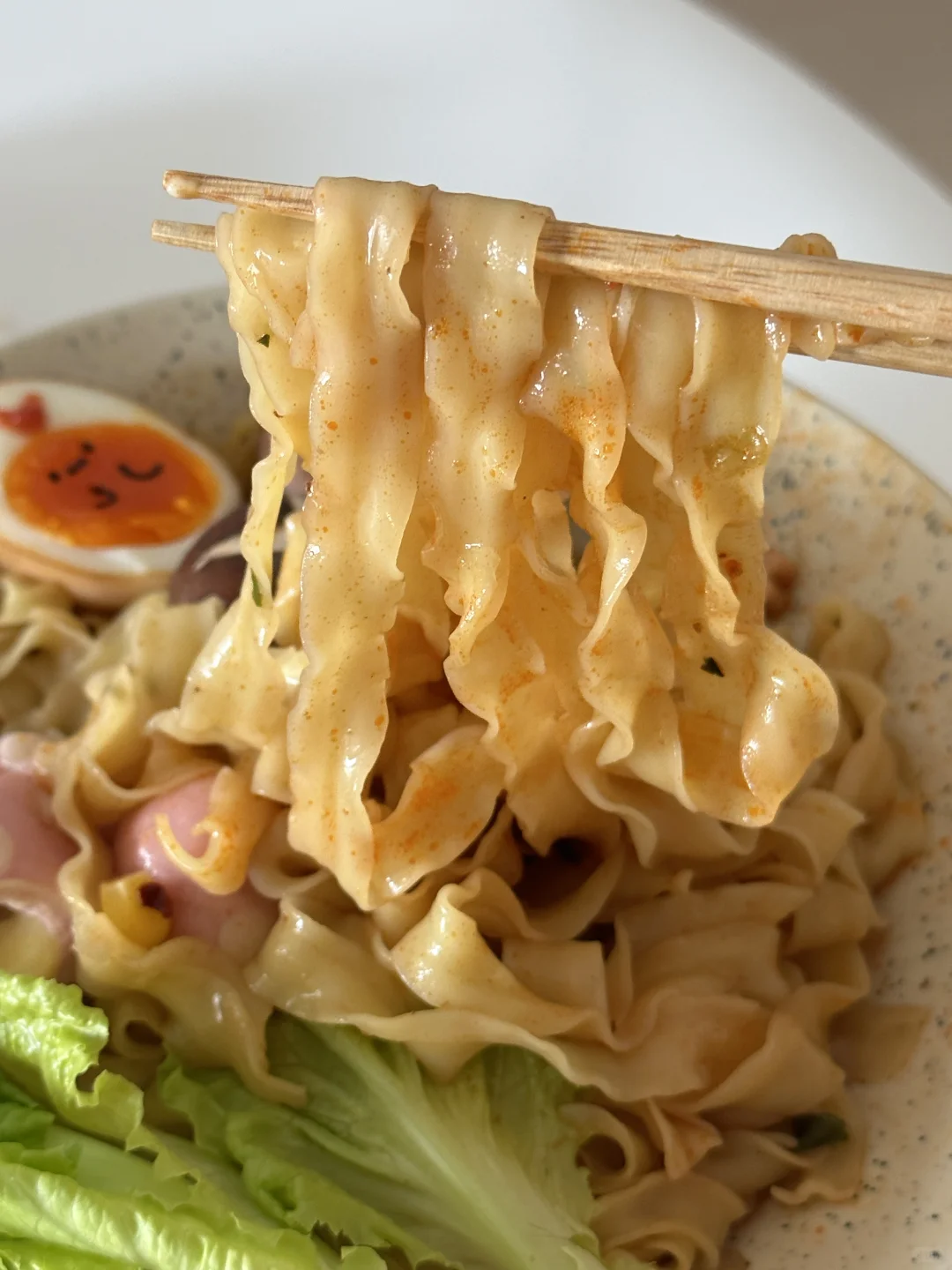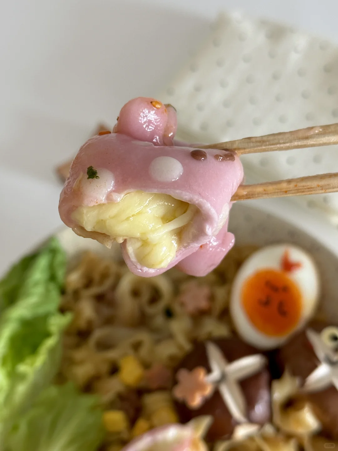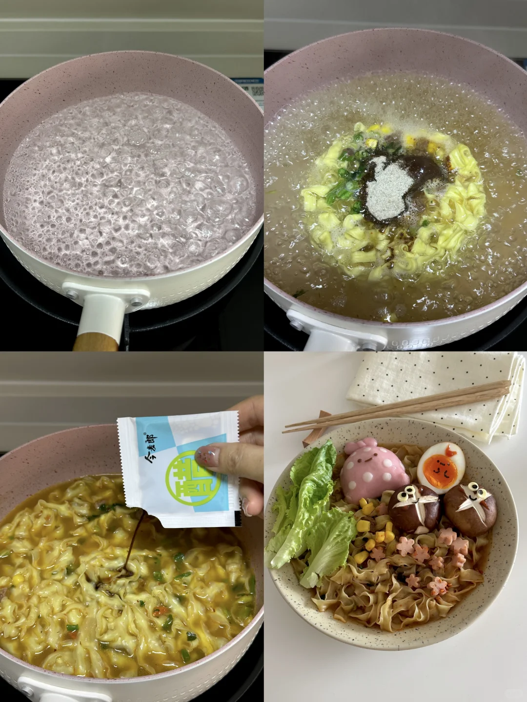 面饼可泡可煮,吃法多样可随意搭配选择哦~像我这样做出可爱的芝士年糕,搭配可爱的溏心蛋,谁说面食不能吃出仪式感![害羞R]