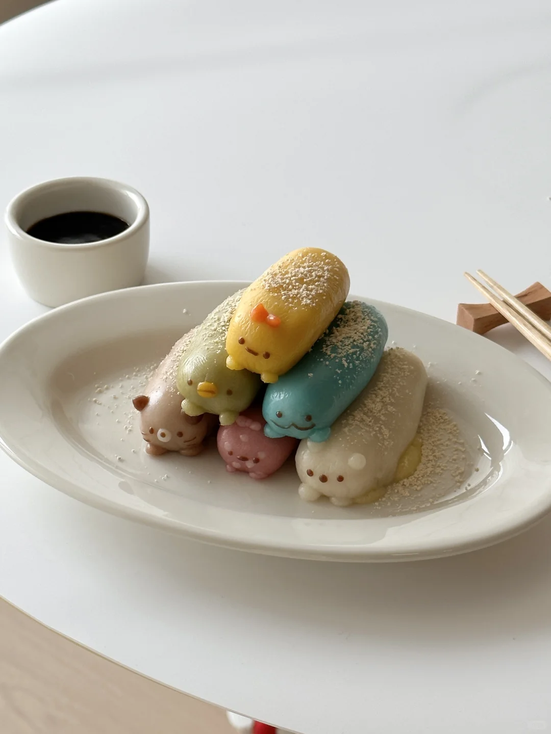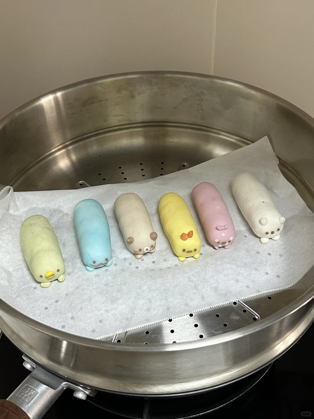 2️⃣调色,每个面团分成35g左右