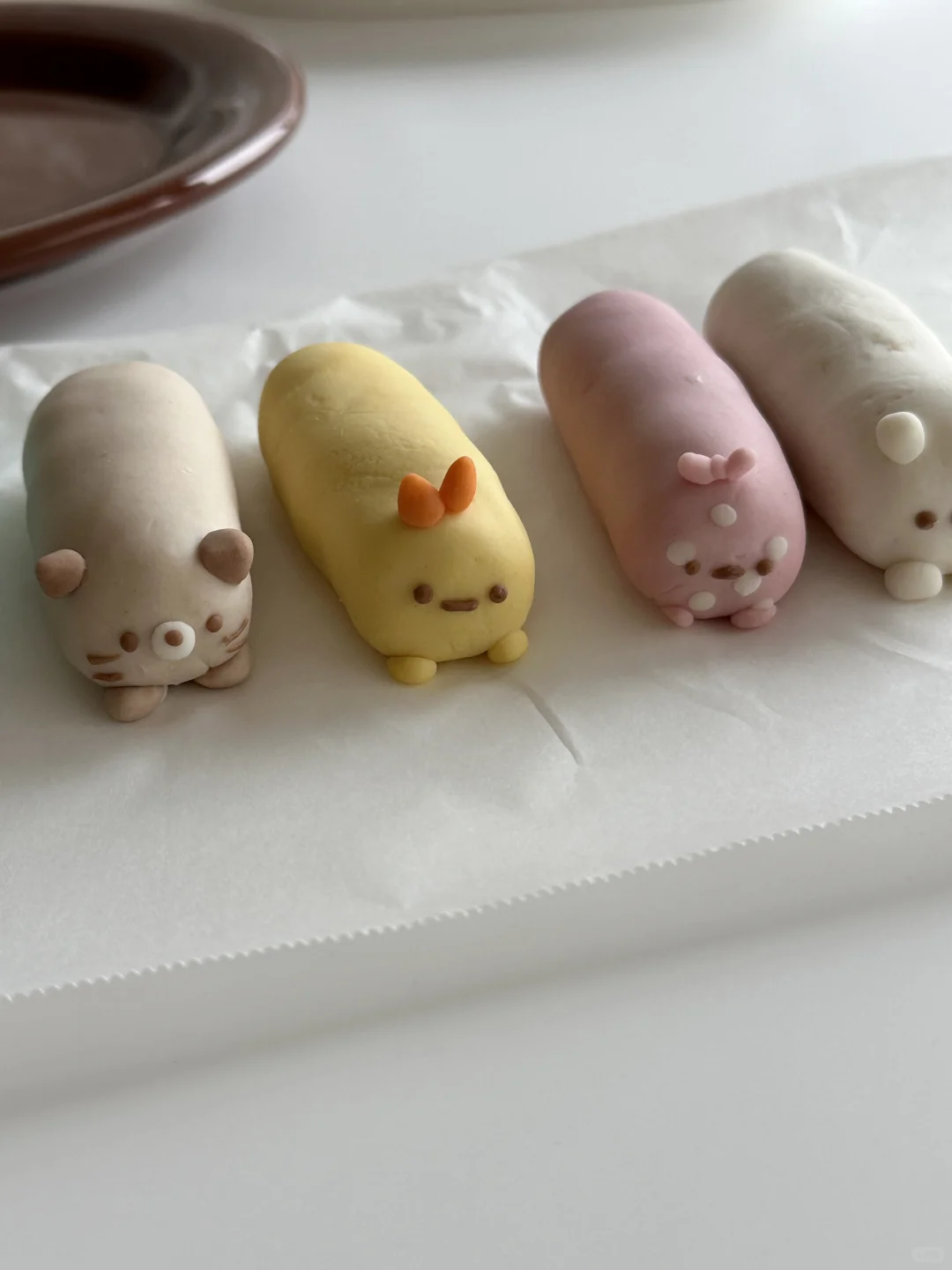 3️⃣面团压扁包入芝士碎,收口,滚成圆柱形,粘合细节