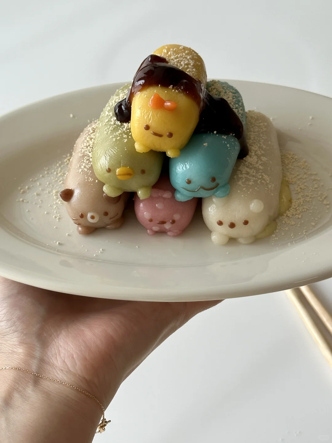 5️⃣出锅撒上黄豆粉,红糖浆