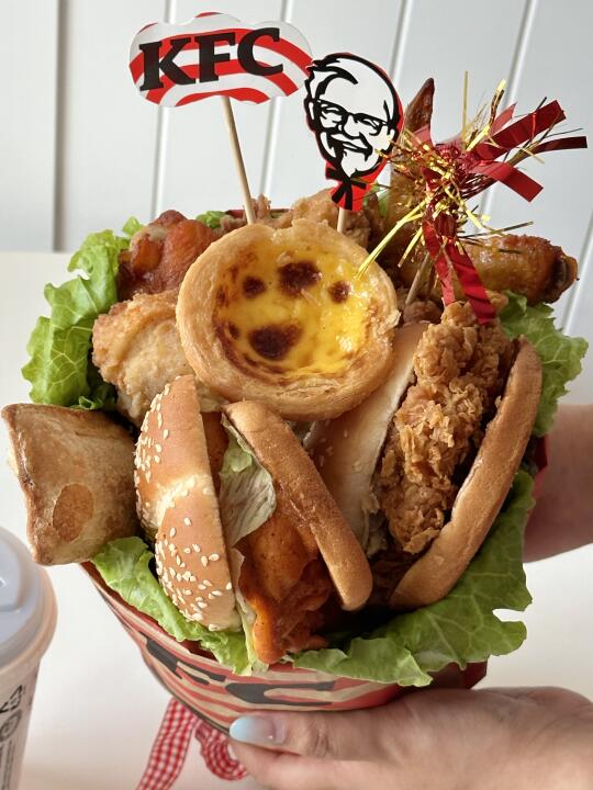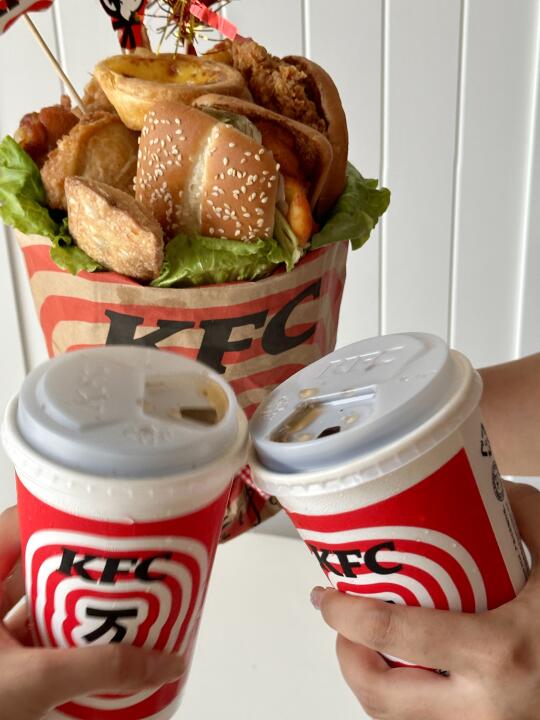 毕业季是满满的鲜花和仪式感,还少不了聚会和美食~🌸 肯爷爷推出了毕业季半价桶~快和你的friends们一起享受这份高性价比的美味吧~[大笑R] 用半价桶DIY可爱的肯德基毕业花束,为这份毕业礼又增加了一份可爱和童趣呀~ 学海生涯我们一往无前,人生的脚步我们一直可以伴随童趣! 青春不毕业半价桶真的超丰盛的!6月10日-6月22日,到店凭券56r享九件,单间不到7r 外送69r得11件,app下单还免配送费 肯德基脑袋真的好满足~