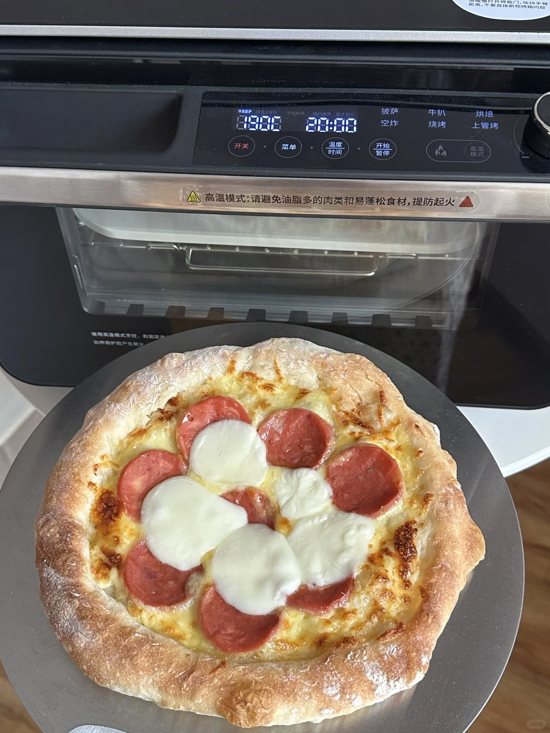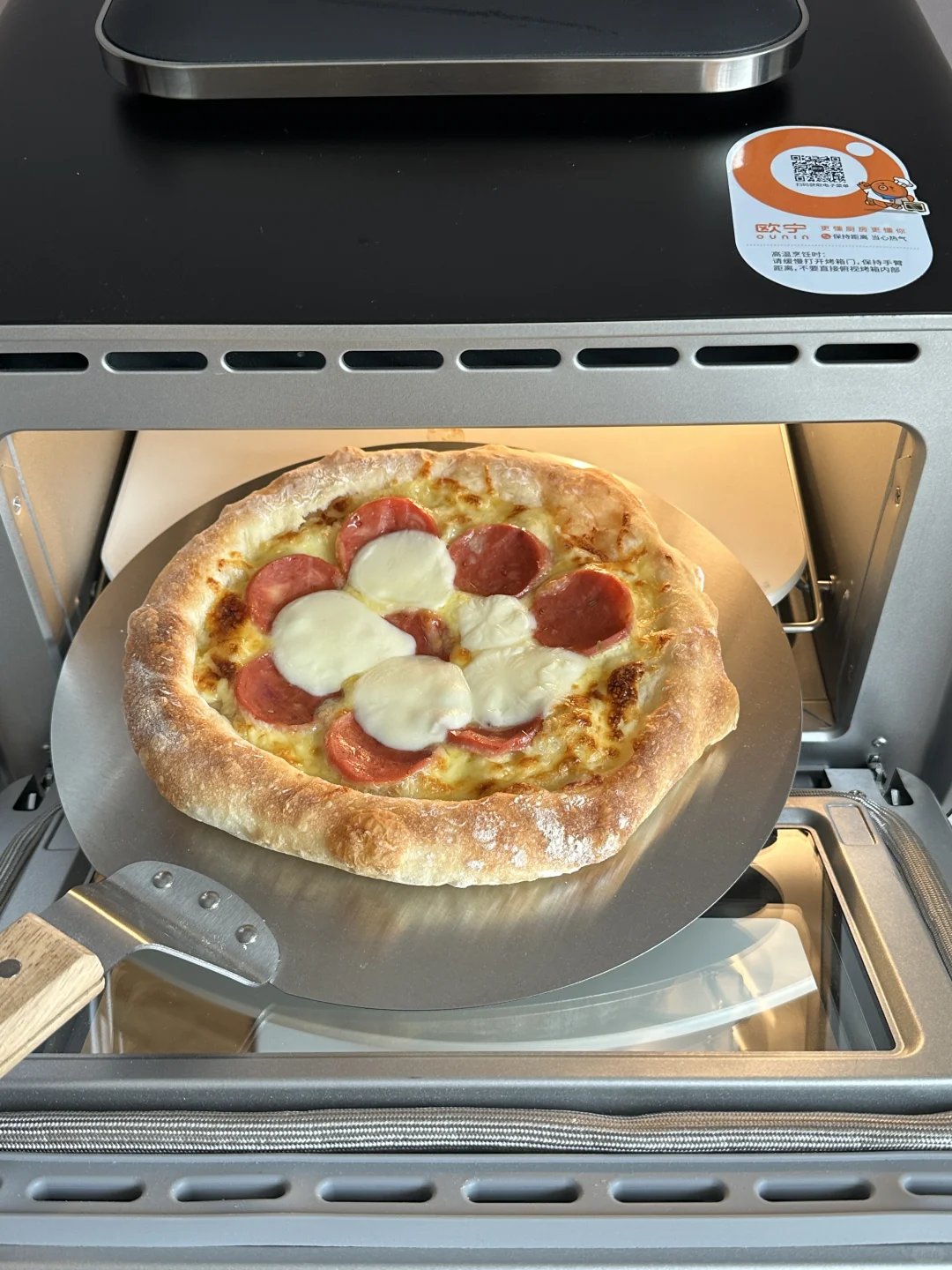6️⃣披萨炉选择高温模式,放入陶瓷披萨石板,提前预热 400°,放入披萨烤制90秒
