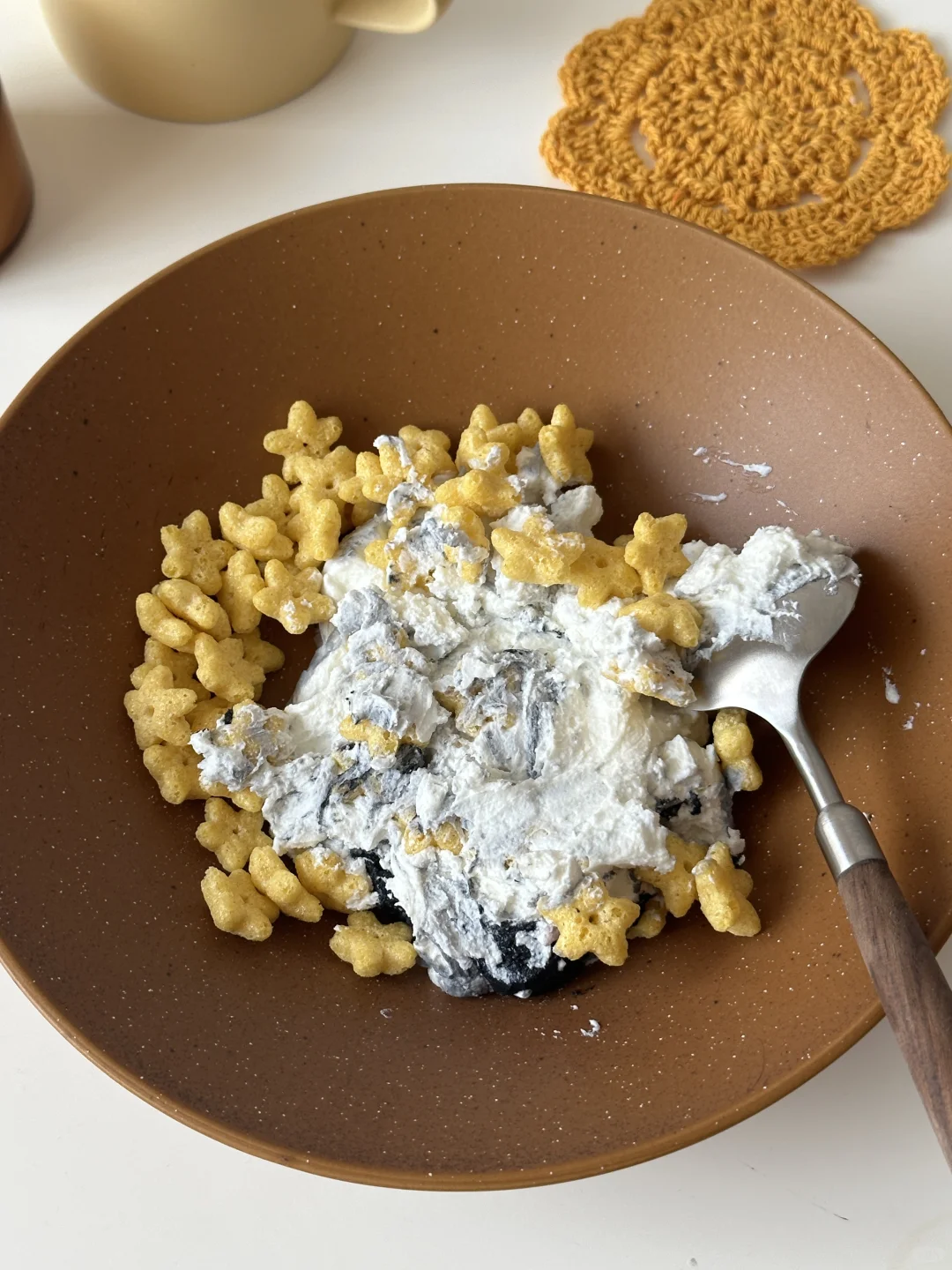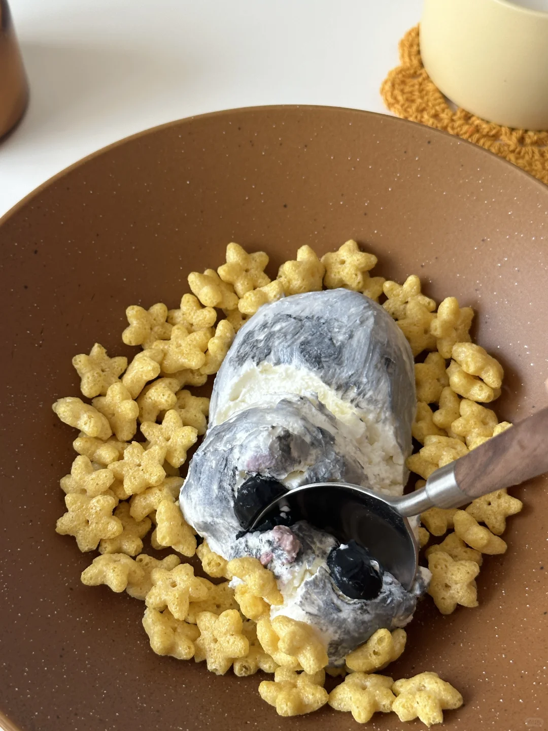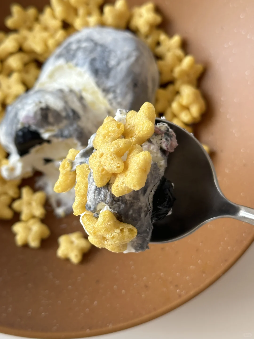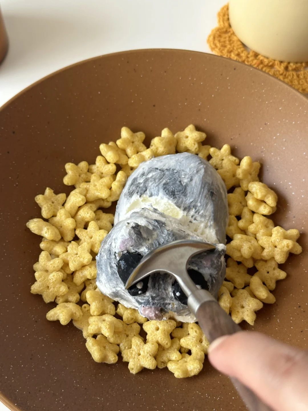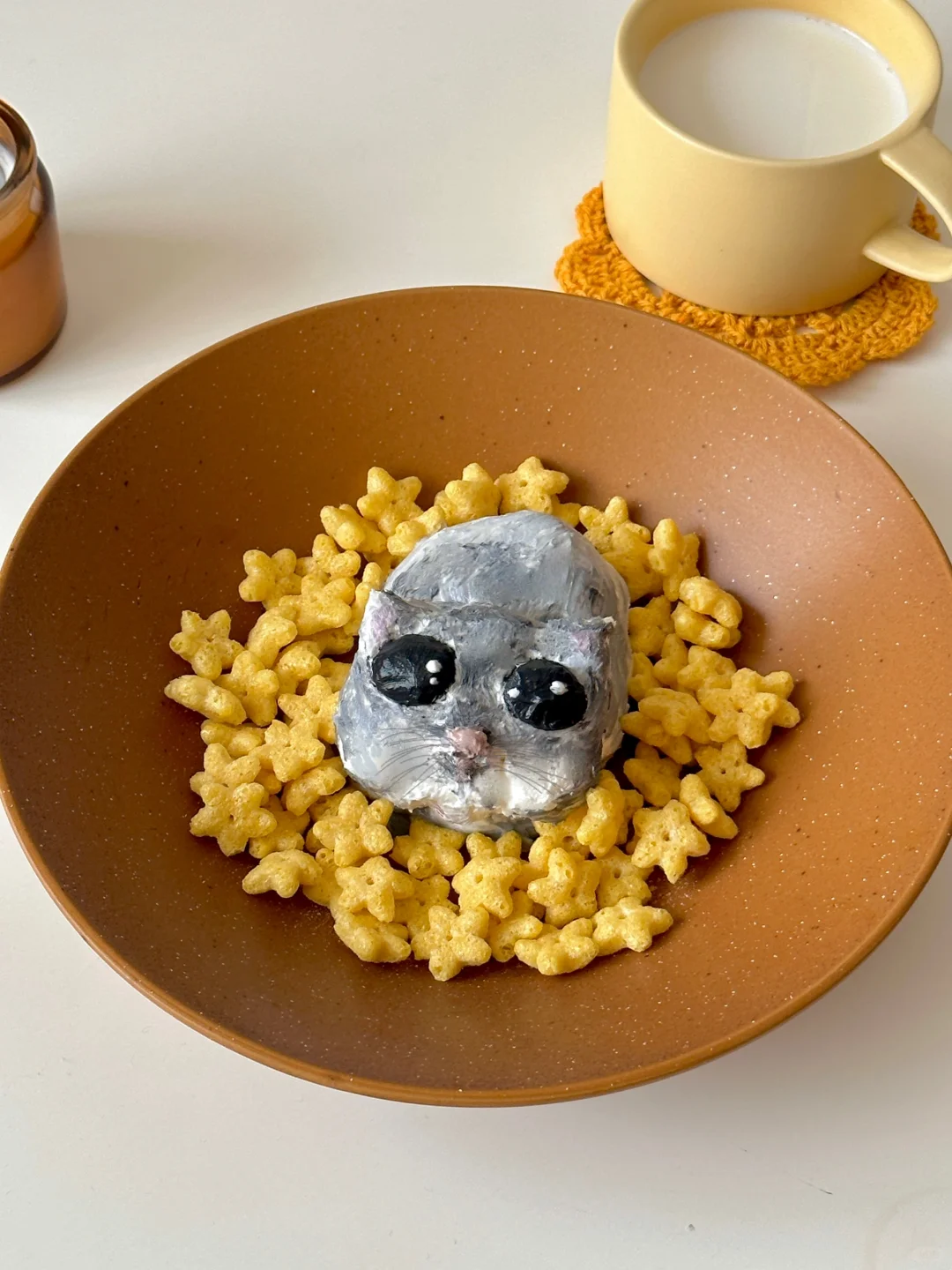 是那只魔性的唱歌鼠鼠没错了~[偷笑R] 过滤好的希腊酸奶用刮刀随意整理,画出毛发和悲伤大眼。 调色:竹炭粉,可可粉,仙人掌果粉