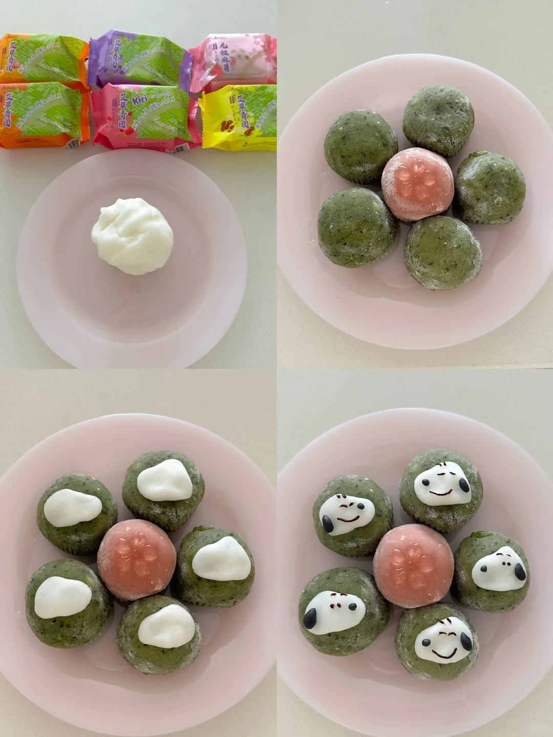 当然,在青团上点缀喜欢的卡通元素,让这份美食更加色香味俱全耶~