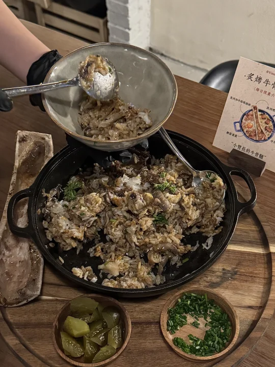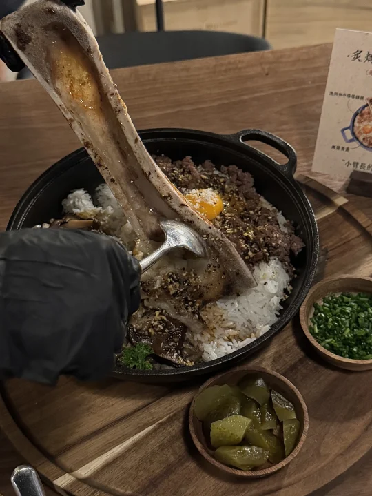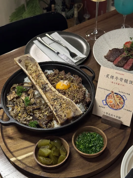 没想到近期吃到zui满意难忘的饭是在 bistro 加了一根澳洲现拆的炙烤牛骨髓饭 口口牛肝菌砸菇混合牛肉的肉香 米饭湿度恰到好处 和无菌蛋拌在一起 好吃到流泪!!