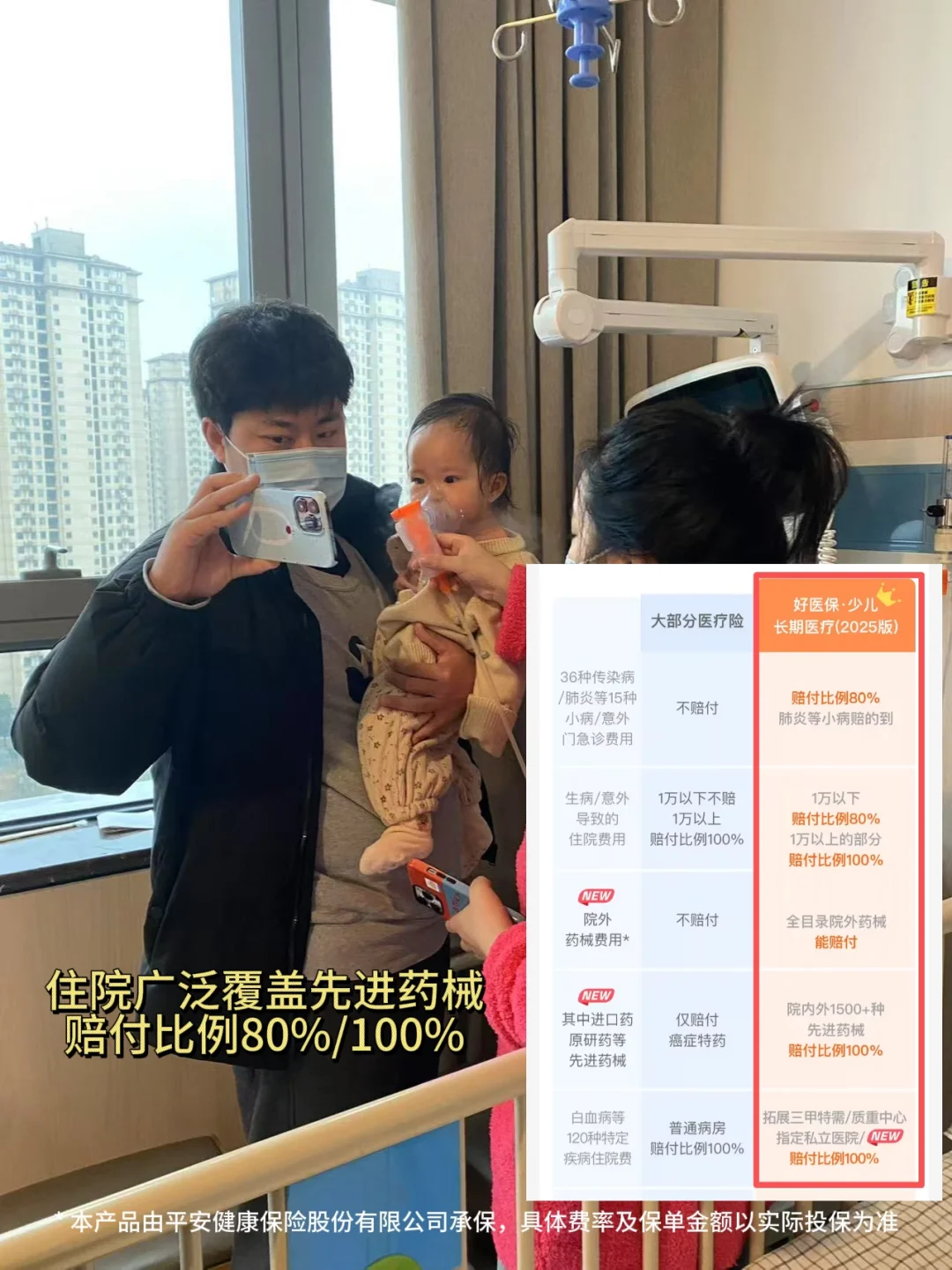 除了基础保障要扎实,大病时的医疗资源和先进医药也是关键。它给了我们十足的安全感:像肺炎、病毒性肠炎这种小病住院都可以放心用效果好的进口药、原研药,而像白血病等120种重疾可以100%赔付孩子去三甲特需和指定私立医院的费用。及时享受更优质的医疗资源,孩子恢复起来也更快。做父母的都不希望走到这一步,但真有那天,咱至少不用为钱发愁。