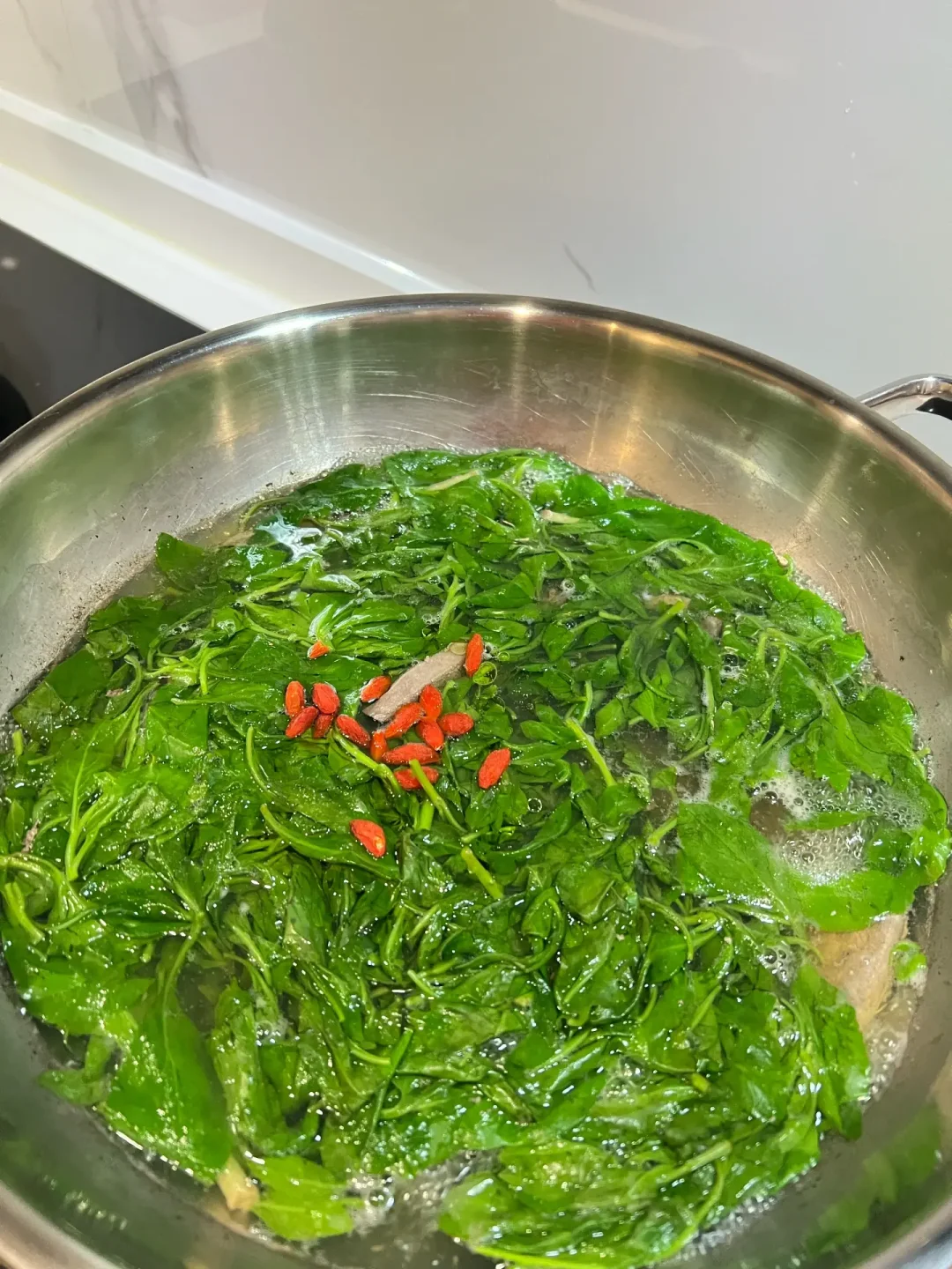 2⃣️腌制猪肝的同时,将枸杞叶洗净备用。