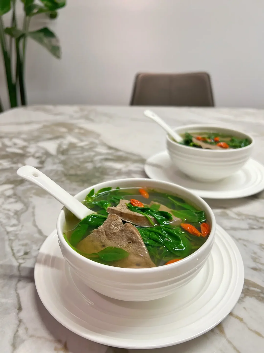 春天是吃各种野菜的季节。用最嫩的枸杞头跟猪肝滚汤,绝对是小孩子的生长食谱,还能清肝明目。