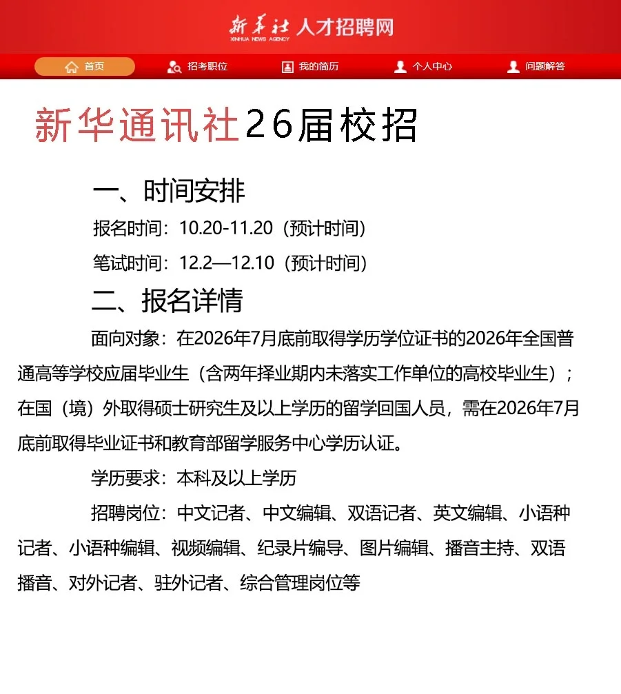 ✅新华社招聘预计下个月正式开启,距离校招启动还剩最后一个月!跟同学说下招聘基础情况!