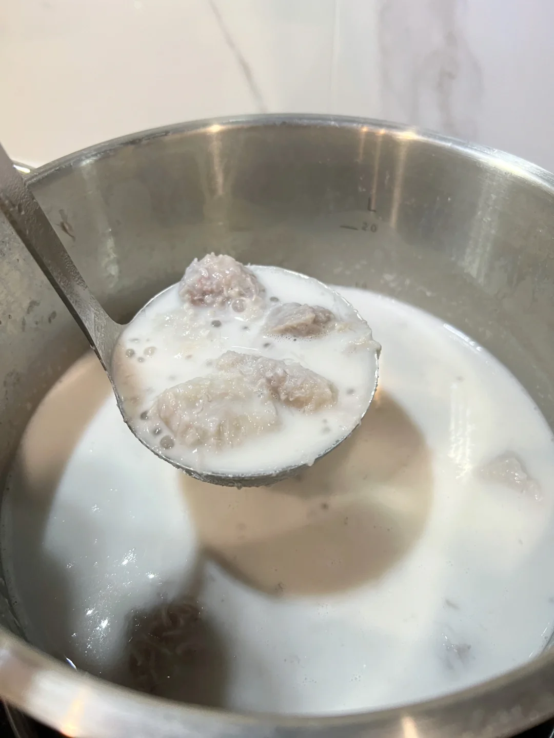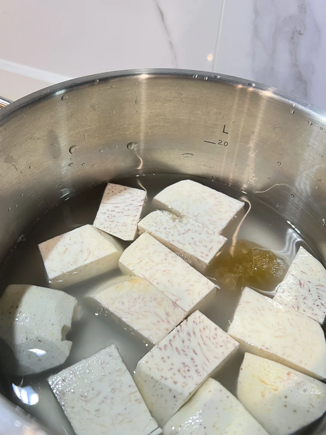 广式糖水铺永远少不了一道椰汁香芋西米露!这绝对是老广的味道,也一直都是热销糖水。其实在家也能还原糖水铺的味道,做法超简单! 这个西米做法很快可以煮到没有白心。 食材: 1⃣️荔浦芋头半个 2⃣️西米80g 3⃣️椰浆100毫升 4⃣️冰糖适量 做法: 1⃣️水开后下西米,盖盖小火煮5分钟,然后关火焖30分钟后,搅拌一下,再开小火煮开。这样你就能得到没有白心的西米了。 2⃣️西米用冷水洗到没有黏滑感,沥水备用。 3⃣️芋头切大块,加入冰糖煮20分钟后用勺子弄成小块。这个方法芋头不容易被煮化。 4⃣️加入100毫升椰浆跟西米煮开后即可。 椰汁芋头西米露四季皆宜,冬天吃热的,夏天冰镇之后吃一口超级解暑。这么简单的糖水快点做起来! 首选广西的荔浦芋头,有一股很浓郁的芋头香味。