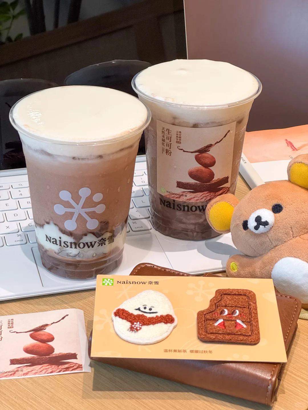 秋天🍂喝上一杯暖呼呼的奶茶得有多幸福☺! 还有敲可爱的毛茸茸冰箱贴~ ✔生可可融雪米布布 咸酪奶盖+生可可粉+米布布+可可冻+糯香黑茶 奈雪研发你也太会了 先小嘬一口绵密的咸奶盖😋随后是滑溜溜的可可冻和五常大米制作的米布布 搭配糯香黑茶 奶香、坚果香、稻香、糯香交织 口感层次丰富 天然风味越喝越香🤤 解馋还不腻,我称它为管理期懂事奶茶! ✔糯香融雪 云南熟普拼配雅安藏茶加上牛乳🥛浓郁的糯香 像在吃小时候的玉米软糖 秋冬喝上一杯热fufu的好幸福