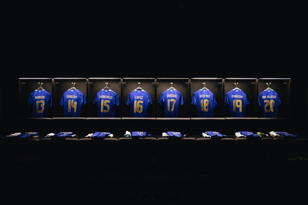 阿根廷vs波多黎各更衣室准备好了!阿根廷本场穿蓝色客场球衣。