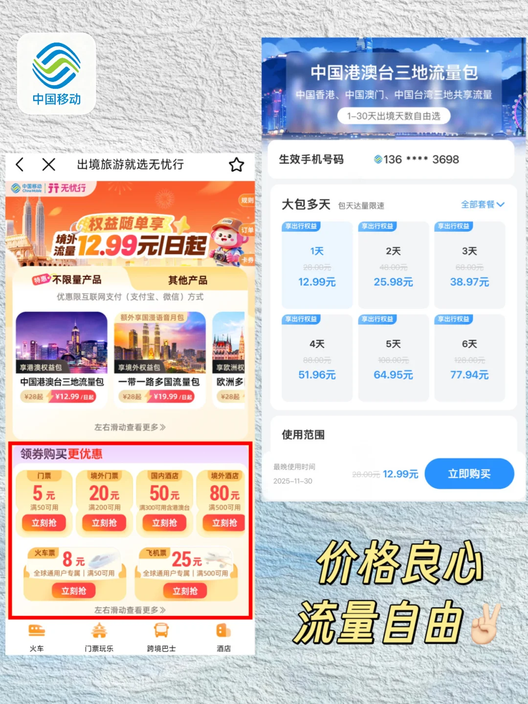 作为旅行“省学家”挖到中国移动这个💰12.99元的境外流量活动,直接实现境外流量自由🥳🥳🥳