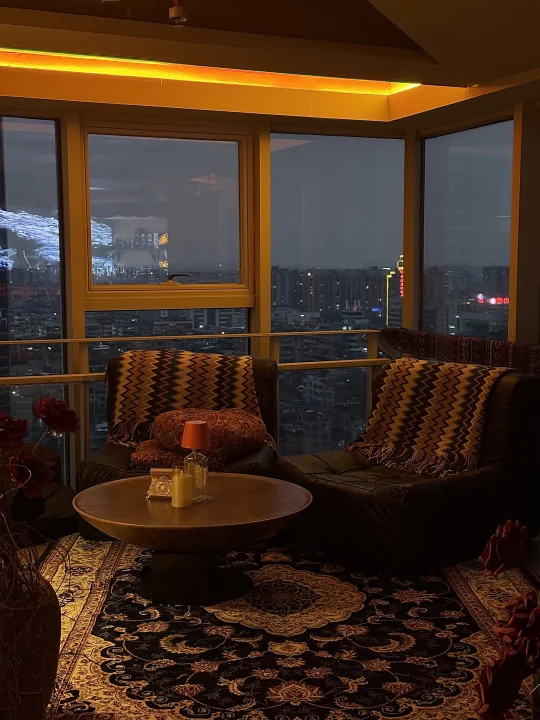 夜幕降临 天空逐渐变成蓝调 真的很美 看着窗外夜景 喝着漂亮酒🍸 -