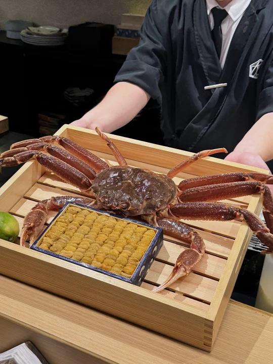 师傅现拆当季鲜活松叶蟹🦀 板前位置可以很好的看到师傅现场制作过程 是味觉和视觉双重享受~ 环境很适合约会和一人食