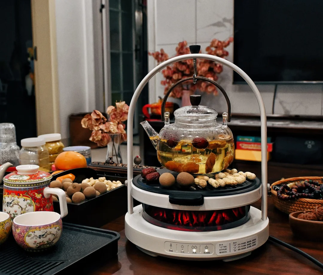 “时间好快 又一个我喜欢的秋冬要来了” 和我的人生搭子 在家煮上一壶热茶 🍵 是Glasslock的电茶炉 🫢 无碳的 3D火山氛围灯 悬壶煮茶 上煮下烤 加大烤网 方便烤果 有大火 小火 保温 方便好用!!在我家的利用率可高了