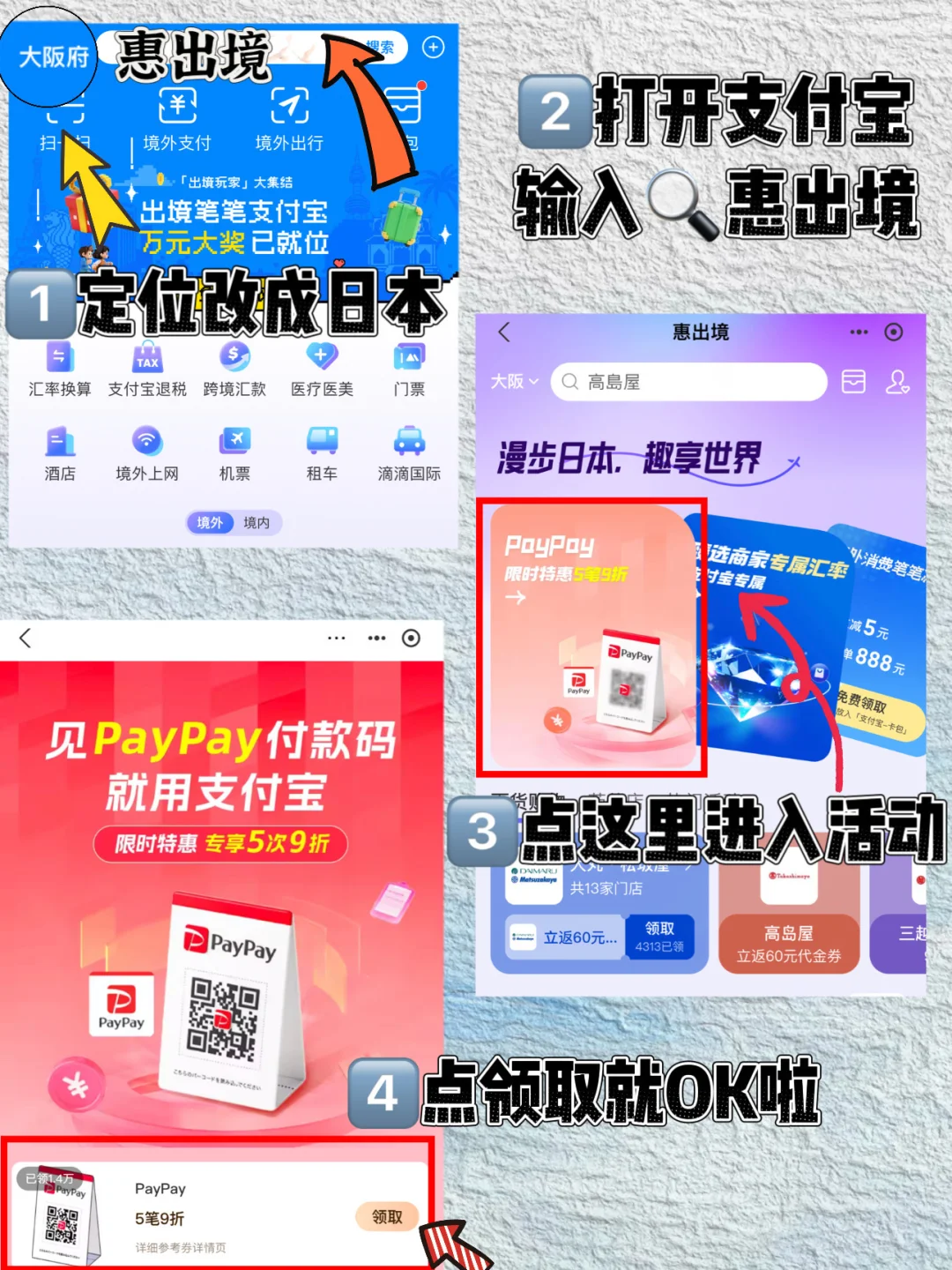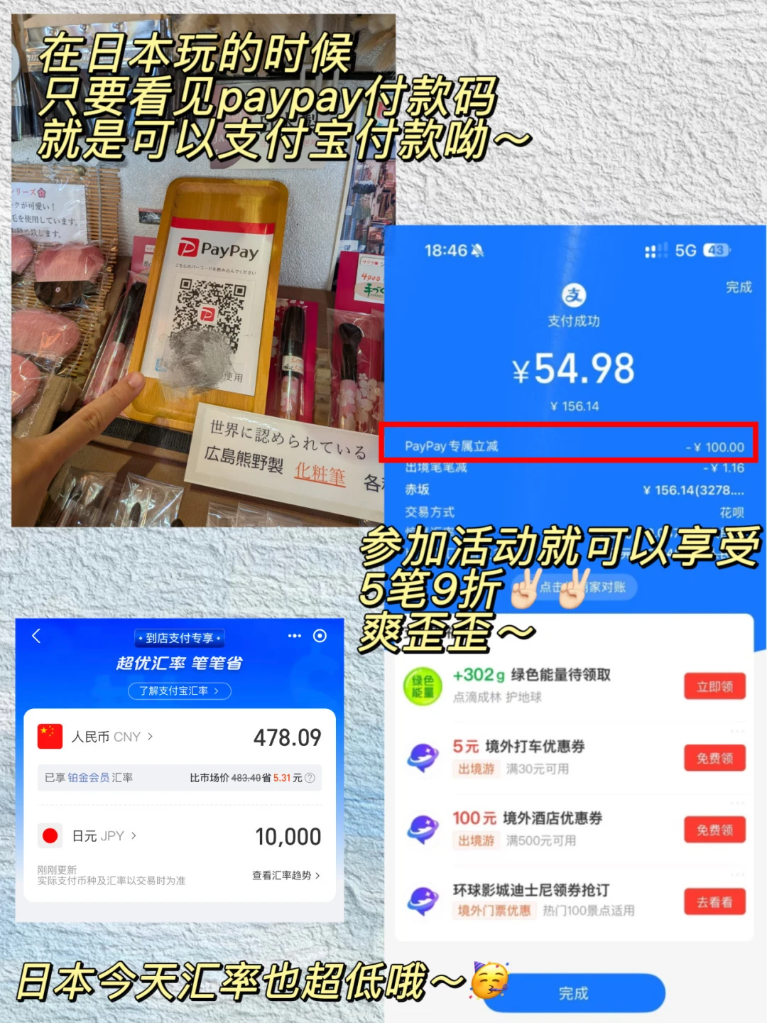💰省钱攻略:支付宝近期PayPay 9折活动我直接吹爆,赶紧分享给宝子们!!打开【支付宝】定位到📍日本,再🔍「惠出境」领券,扫PayPay码享5次9折,还能抽立减100元,忘领券扫收银台海报也能领,我在心斋桥买草莓大福,原价29元折后才26元,省出一瓶矿泉水钱~朋友在黑门市场吃海鲜丼直接减了100,相当于白🉐️半份玉子烧!超开心✌🏻⏰时间9.25-11.30