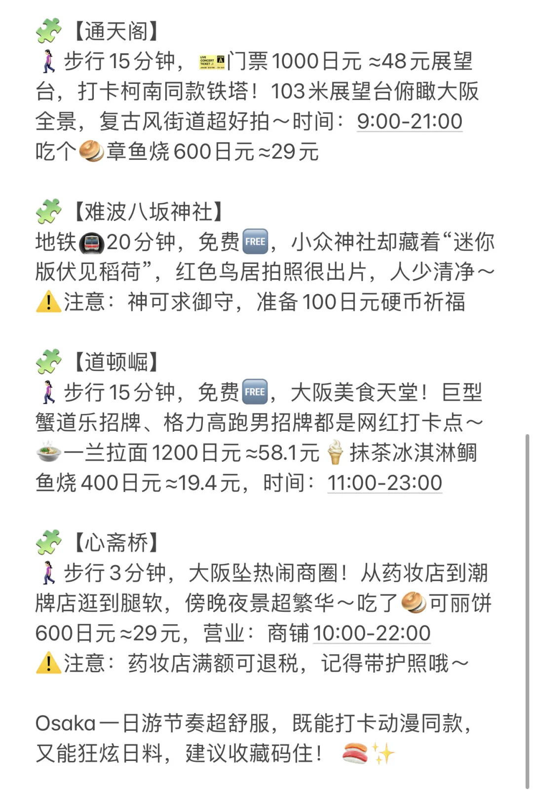 宝子们,大阪一日游精华路线,好吃好玩又出片,还有省钱攻略,快快码住吧😍