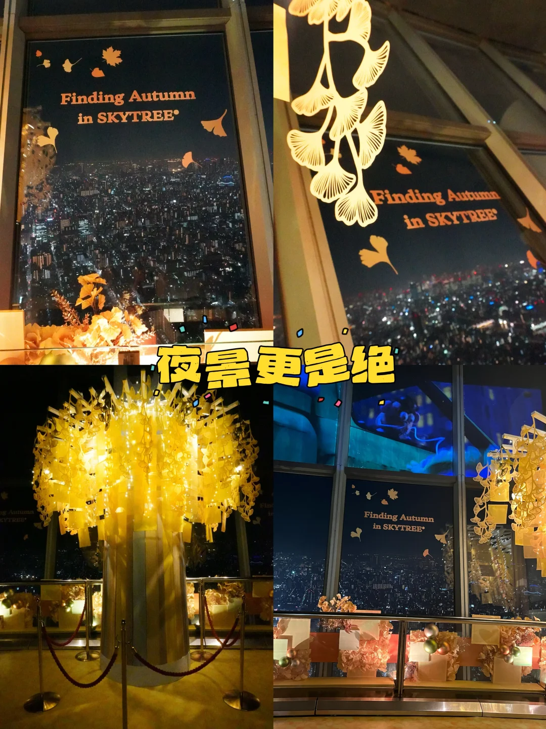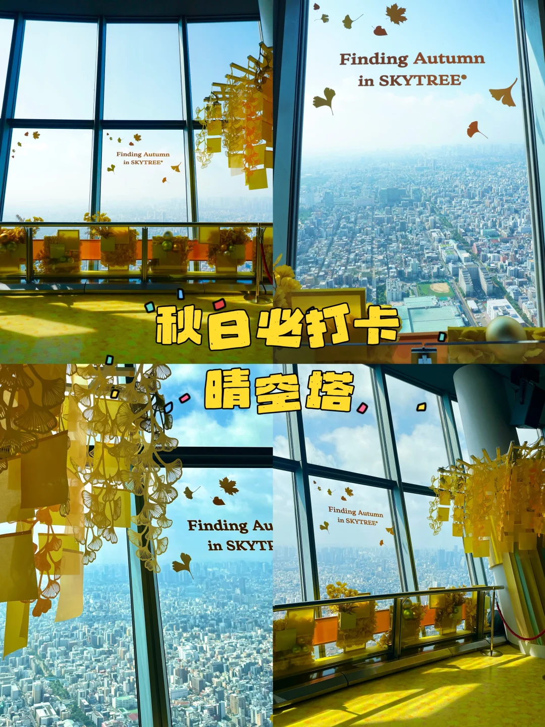 天望甲板+天望回廊套票🎫162元,秋季特别装饰已上线,超级温馨!350楼天望甲板挂满枫叶针织挂毯,角落南瓜摆件提前感受万圣氛围,还能偶遇「晴空妹妹互动会」,合影免费领秋季贴纸~450楼的夜景机位别错过!傍晚6点后塔身亮暖橙灯,偶尔闪紫色光斑,用手机长焦拍,灯光和云层层次感绝了,比白天更出片!逛到5楼时,别忘了去THE SKYTREE SHOP,店里有秋季装饰的伴手礼,印着晴空塔的枫叶书签当作伴手礼超绝!