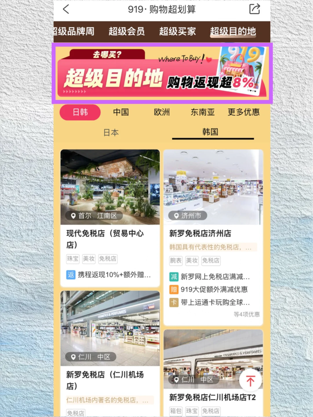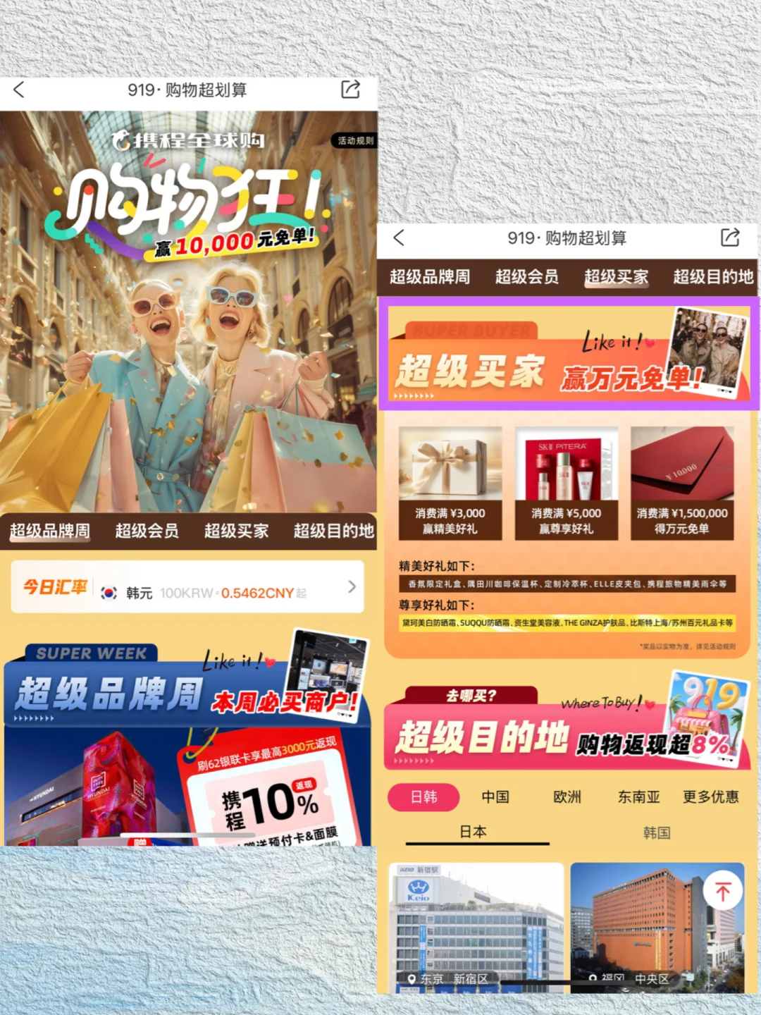 宝子们去韩国那必须买买买啦,超划算的✌🏻想更省钱那必须去携程参加购物超值满减和返现活动,也是在携程🔍【李想旅行】点购物banner就可以进购物页啦!记得先领购物满减券!