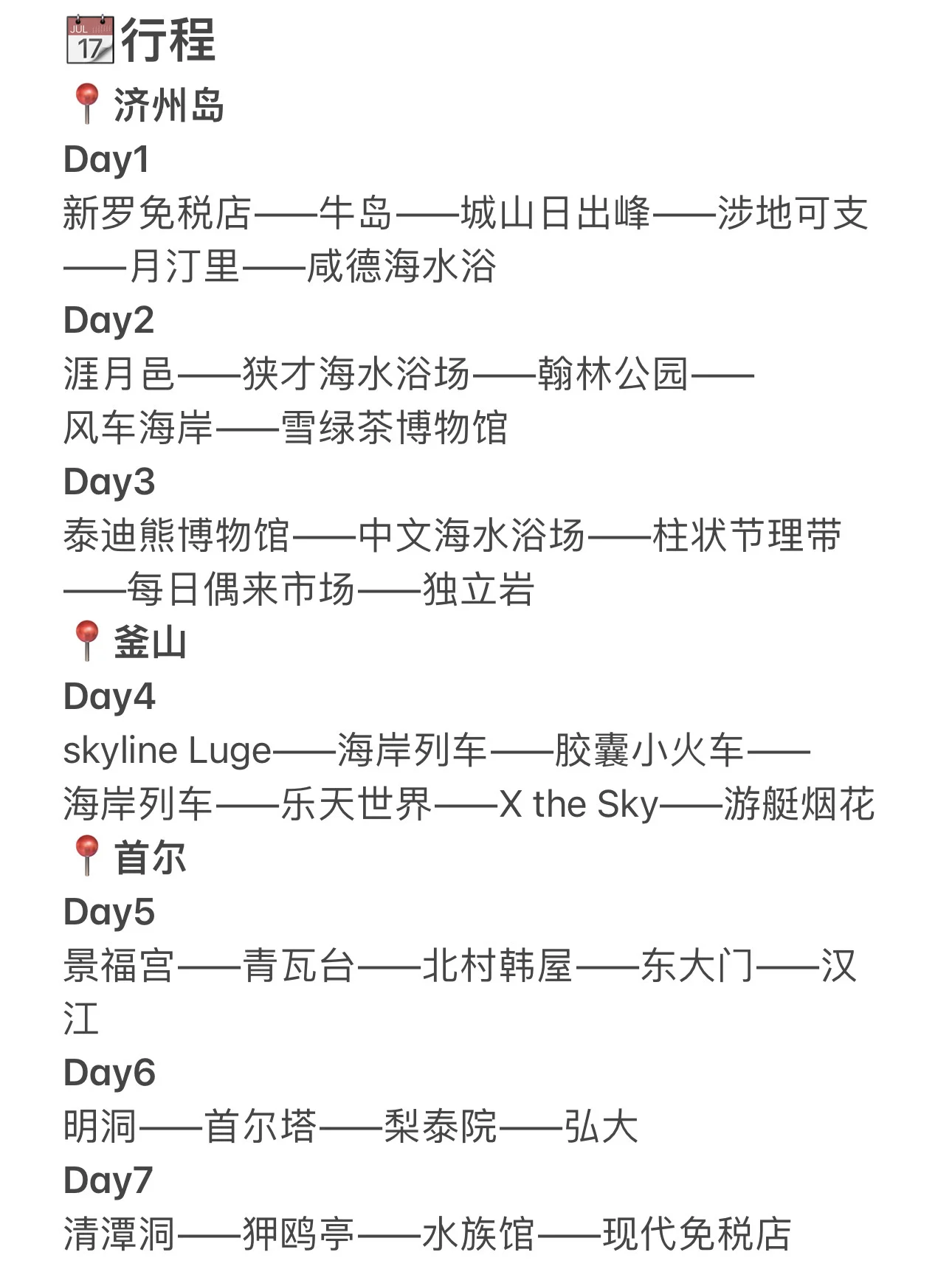 skyline Luge——海岸列车——胶囊小火车——海岸列车——乐天世界——X the Sky——游艇烟花