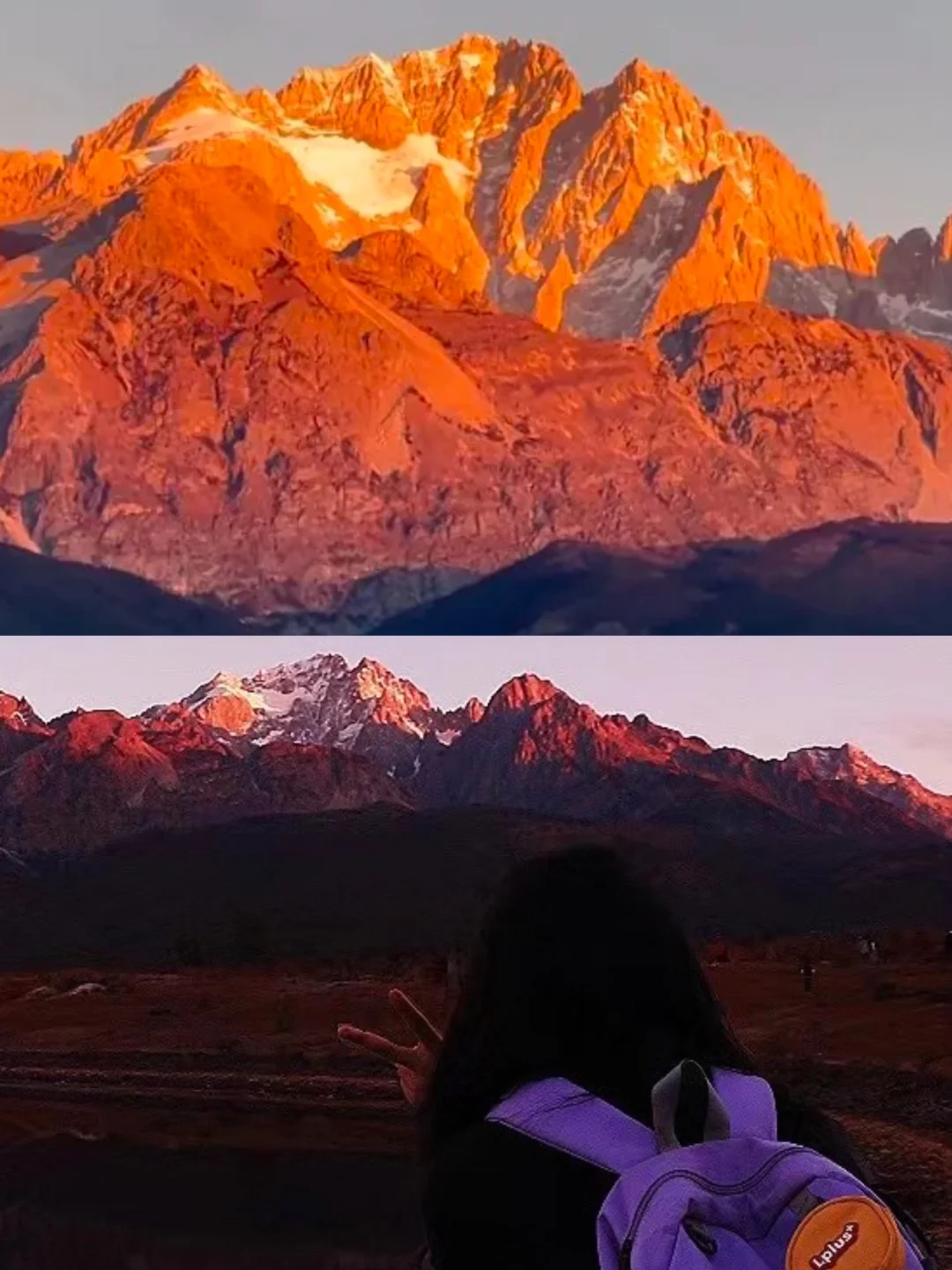🔴东巴谷:凌晨蹲日照金山,金光洒满雪峰,据说见者好运一整年