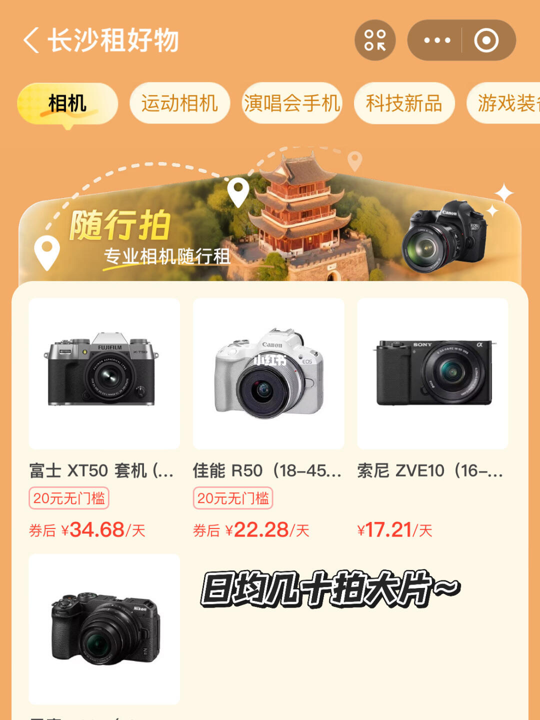 除了相机 还有服饰、游戏装备等十大品类统统可租
