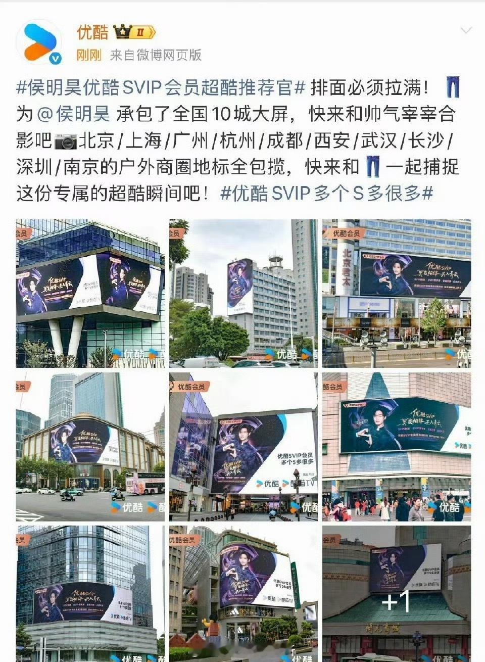 侯明昊入青云年榜11了,优酷还为SVIP会员推荐官侯明昊包下了10城大屏
