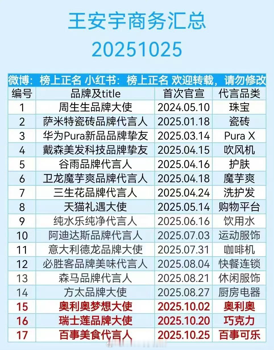 王安宇代言商务这才过了多久又涨了,而且全是大牌