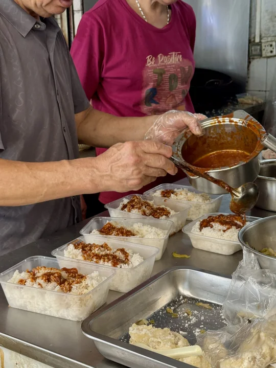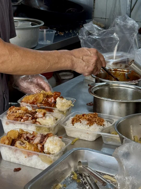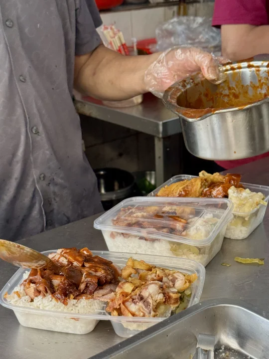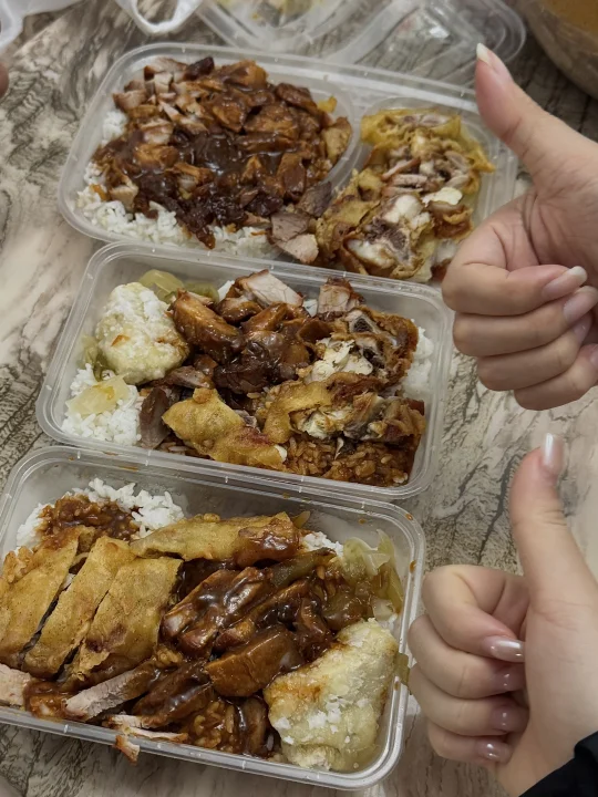 这家叉烧饭真的很绝!!超好吃!!! 饭上淋上秘制叉烧酱 配菜有叉烧肉、炸鸡翅、炸芋头、酸菜 一口下去好满足 tips:店内不设堂食~