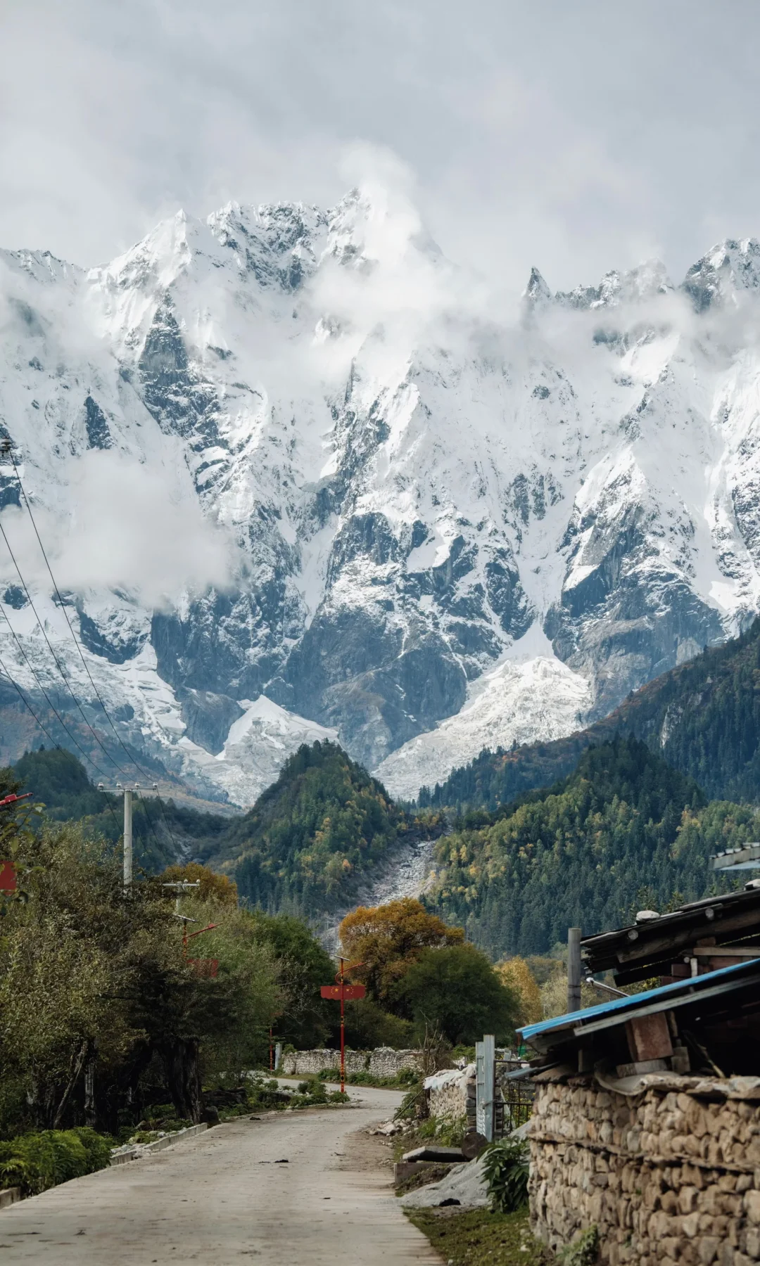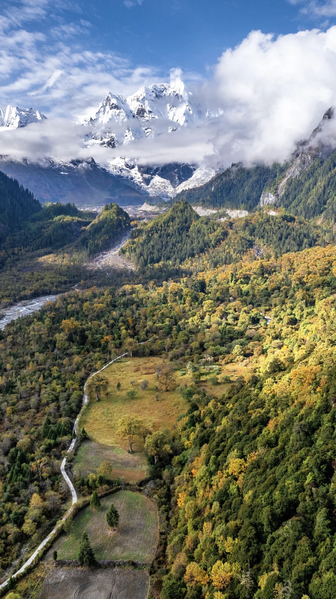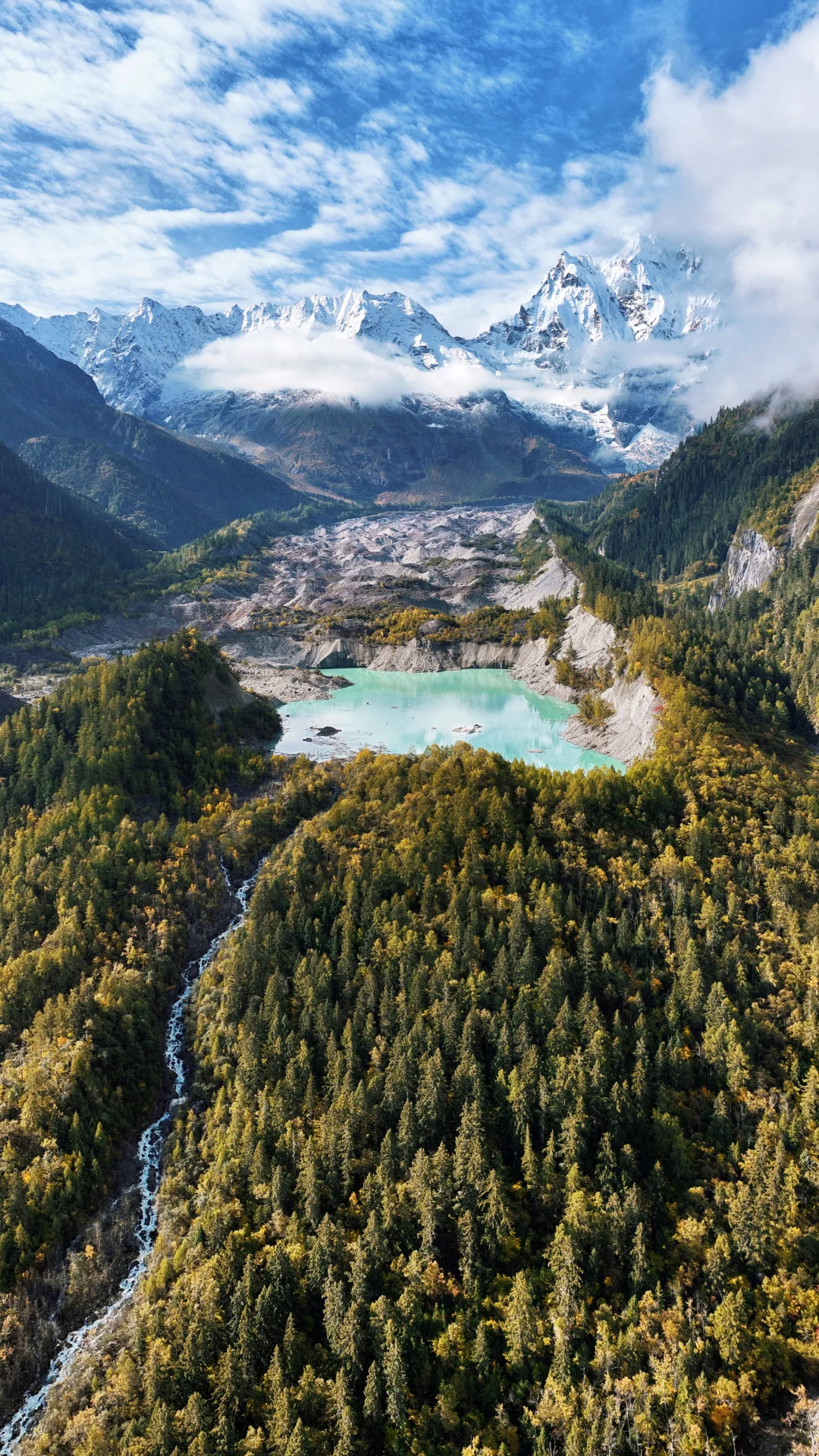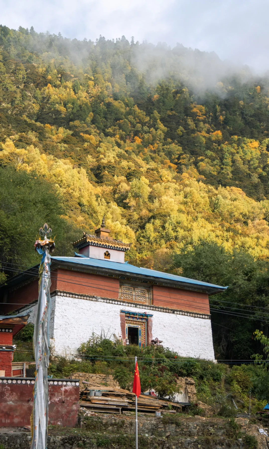 🍂秋天来的话正好可以看彩林,这里植被丰盛,雪山,冰碛湖,冰川,彩林,寺庙,溪流,甚至还有油菜花!