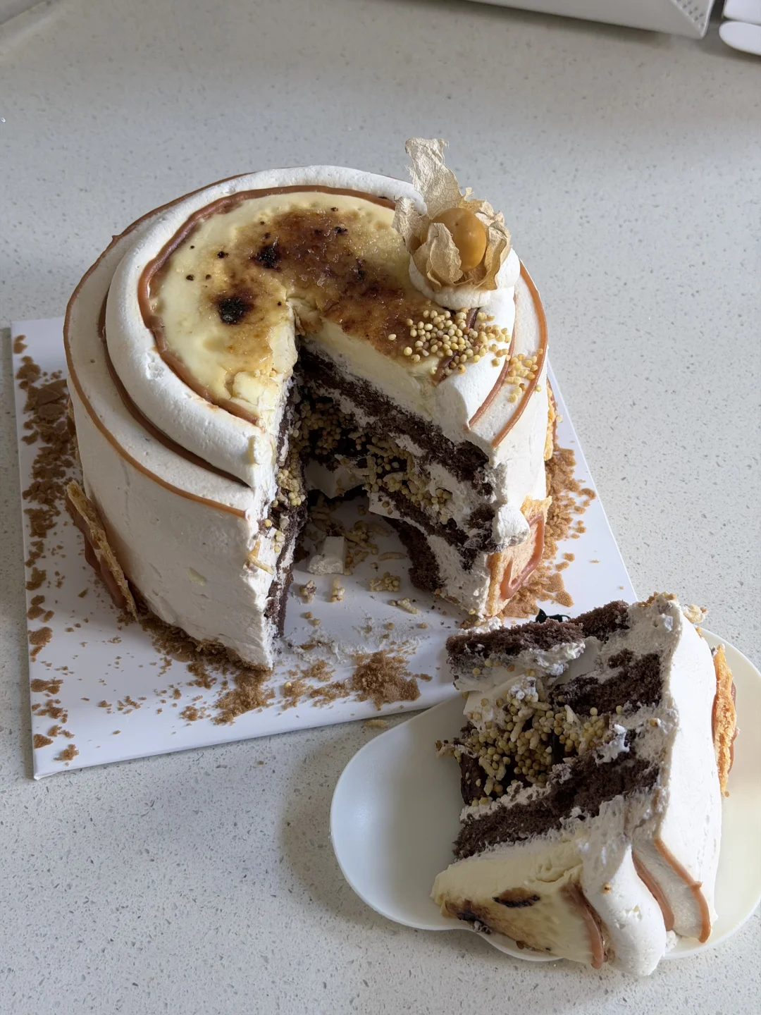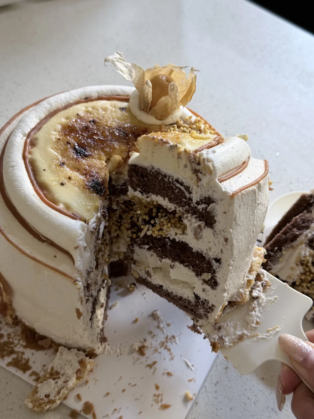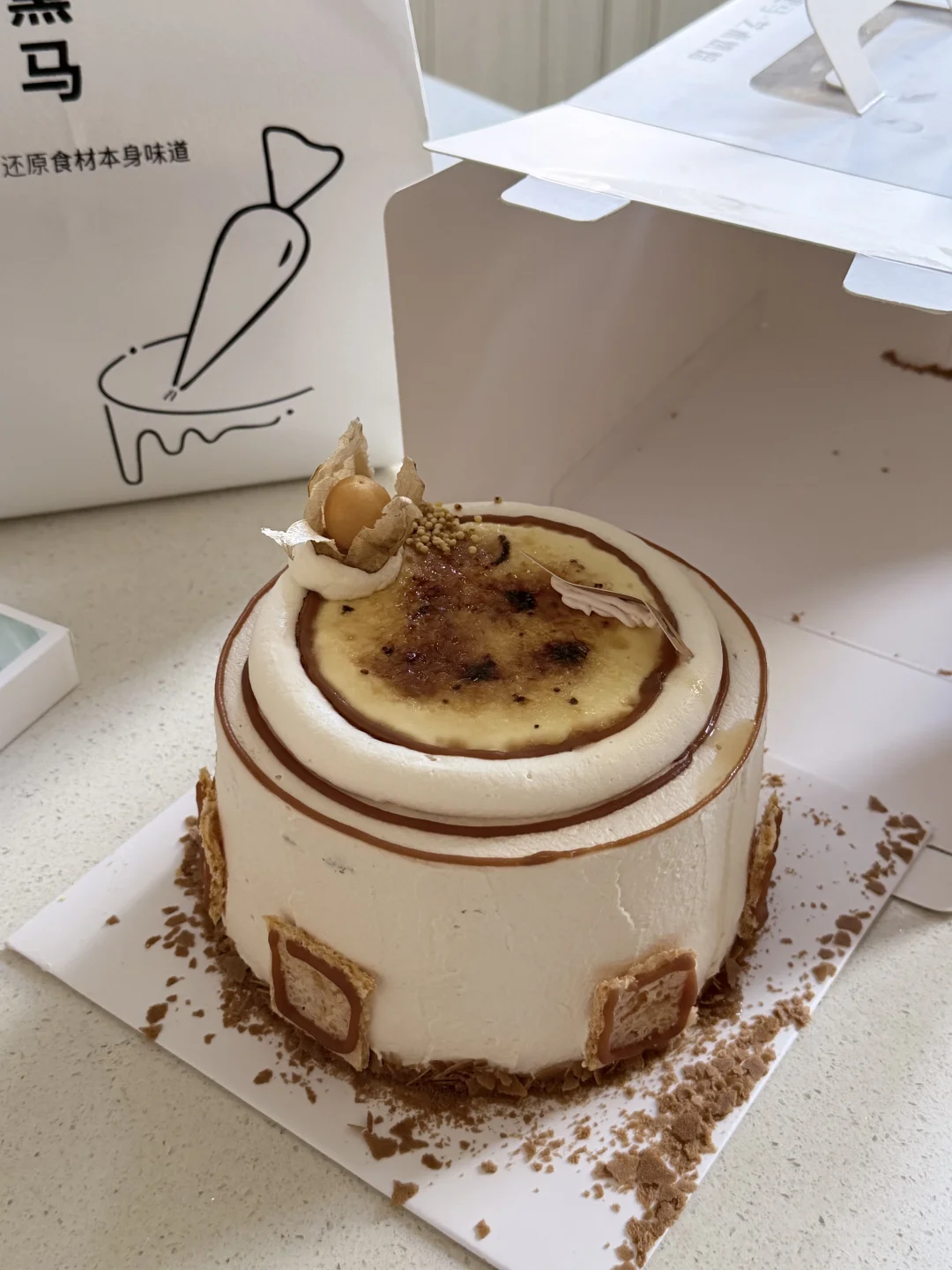 最喜欢过生日🎂 美美的蛋糕来自darkhorse黑马家 奶皮子蛋糕甜份刚刚好 妈妈吃了一直夸 因为家里人年纪大了血糖高这款蛋糕的甜度控制刚刚好 就连妹妹外贸协会也连连称赞 颜值在线 里面有treetree小圆米增添独特风味 表层的布丁🍮上还有焦糖 里面也有布丁滑滑嫩嫩 口感层次丰富👌