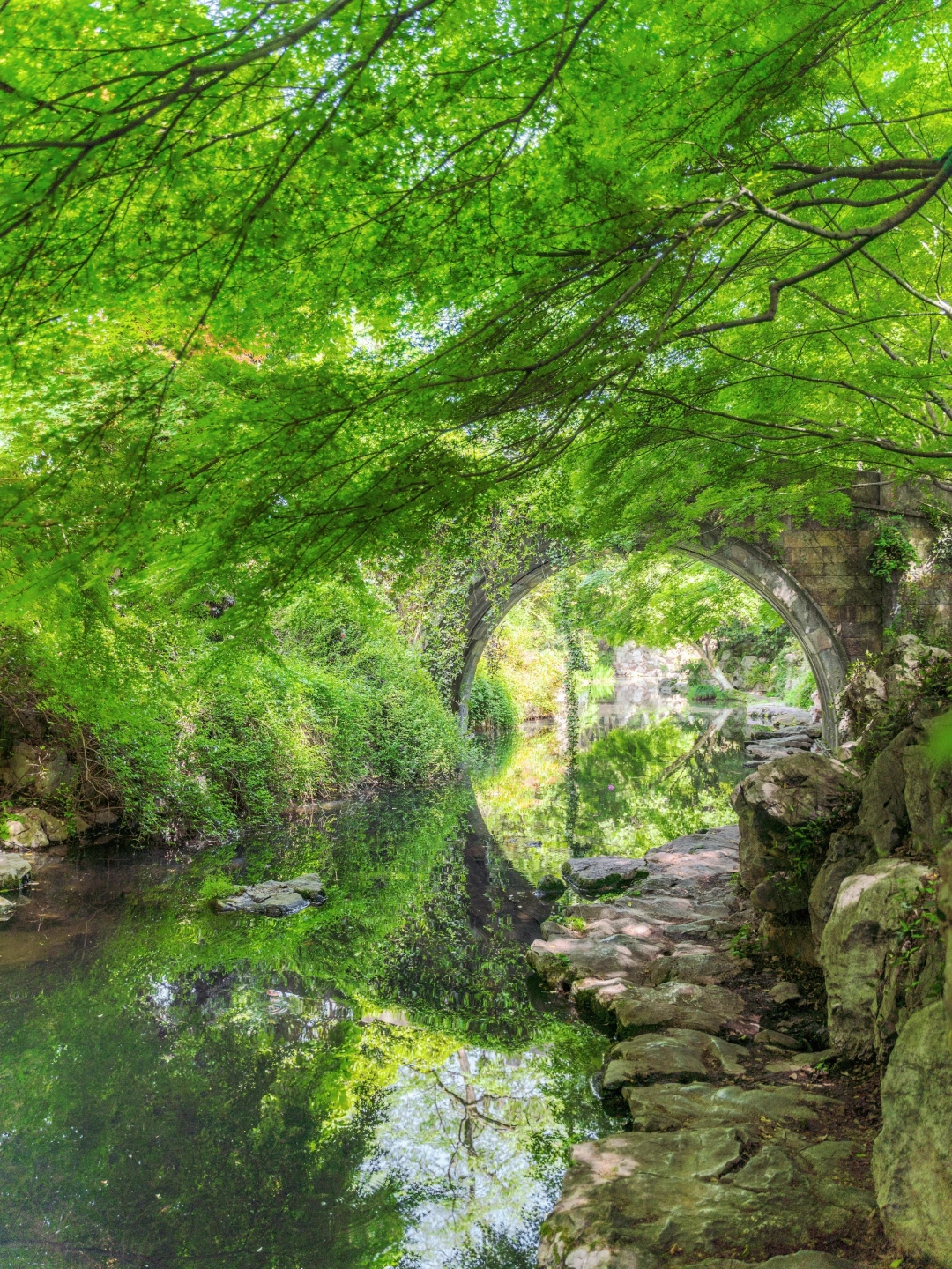 之前发过一篇合集 很多人再问这张图的拍摄地点 其实很多人经过了这里也没有发现 - 📍地点:柳浪闻莺新横河桥(具体怎么走写在图3) 🕛时间:全天开放,不过我觉得上午光线好点 💰门票:免费 - ☑️☑️tips 1⃣这里最好是带广角或者超广角来拍照,桥洞和枫叶组成的绿色秘境真的很好看 2⃣桥底下是石板路雨天还是蛮滑的,要小心不要掉水里 3⃣文明拍照,垃圾不要留下 4⃣秋天这里也很美五彩斑斓的 -