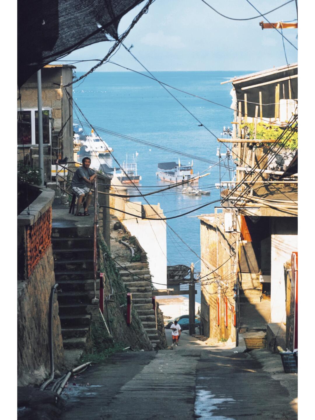 四礵列岛住的那个岛,一上岛可以看到一块牌匾,往上走你以看到这条路