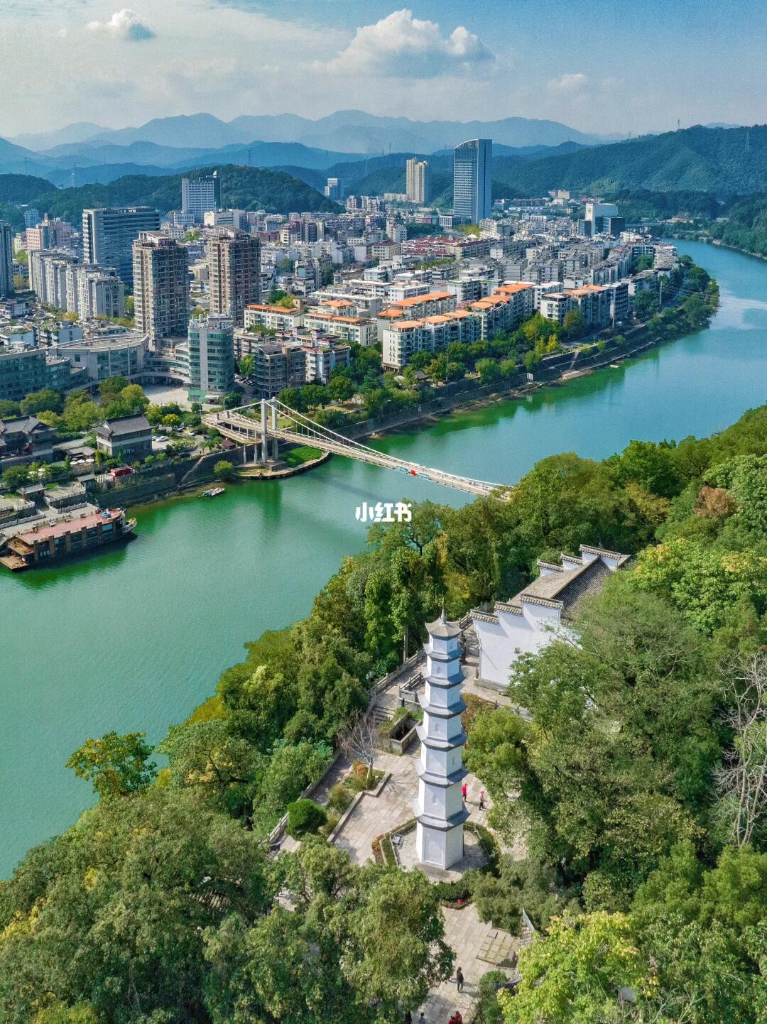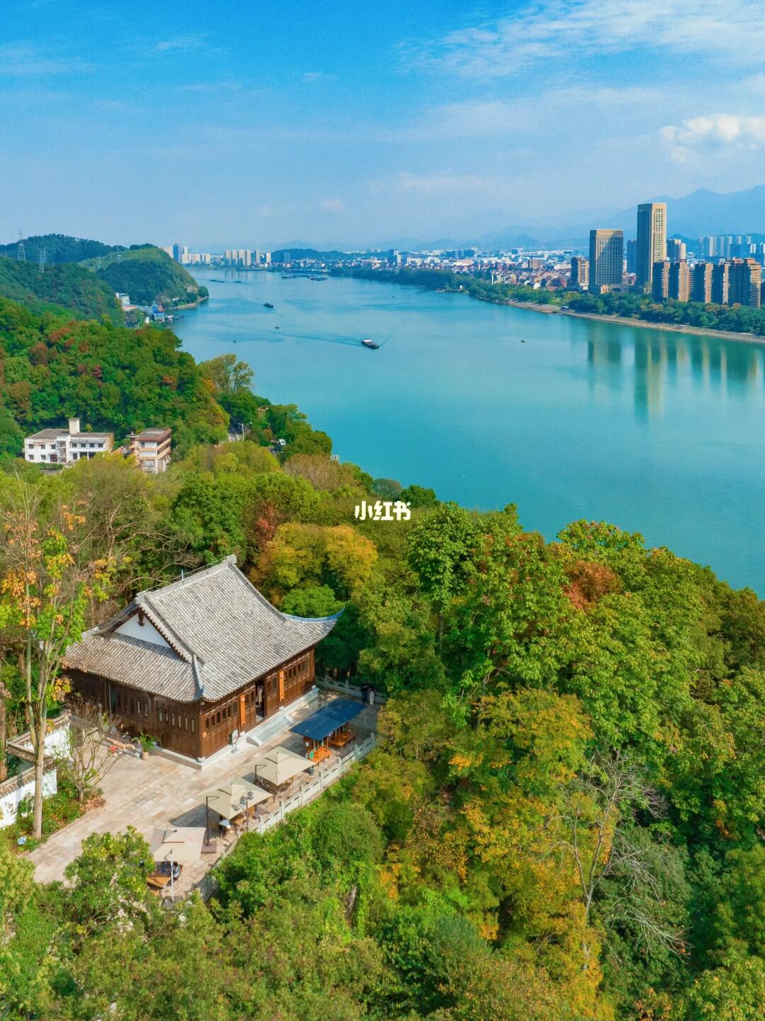 桐庐作为江浙沪周边游的山水小城,也是照进现实的《富春山居图》,如果不想工作,那就来桐庐过两天惬意的生活吧~ - 自然山水才是桐庐游玩正确打开方式,桐庐不仅有大奇山森林公园,分享一个桐庐小众徒步登山地【桐君山】~山不高,大约爬20分钟就能到山顶 - ▪️从停车场走到登山口的途中经过一个新中式庭院,院里正开满桂花,香气扑鼻。 ▪️登山过程中基本晒不到太阳,山都被绿植包围,仿佛闯入现实版绿野仙踪 ▪️桐君山山顶江天极目阁有家咖啡店,古色古香,很安静很舒服,爬到山顶,一边欣赏落日夕阳,一边远眺富春江江景,十分惬意。中式茶香与富春山水在此时十分融洽的结合在一起,太羡慕桐庐人在自家门口就能享受这样的生活方式了 ▪️下山的时候途径铁索桥,可以看到桐庐新老城区,隔江对望 -