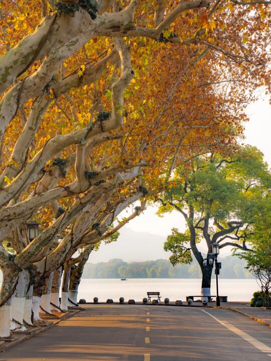 秋天的西湖无论是日出还是日落都美的封神,惬意的漫步在北山街,一半梧桐一半西湖的浪漫,只属于杭州~