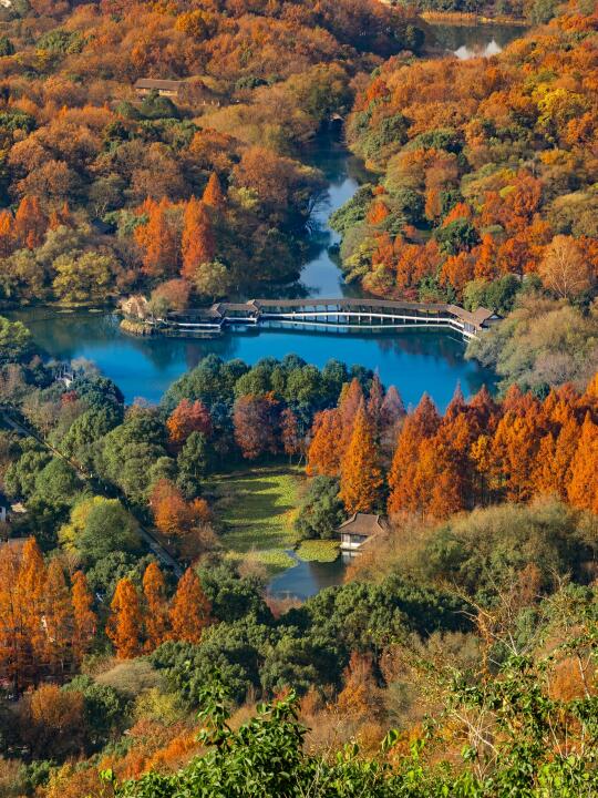 太子湾定位拾翠亭徒步30分钟到达山顶,把西湖的秋日风景尽收眼底,这是专属与杭州的秋日油画