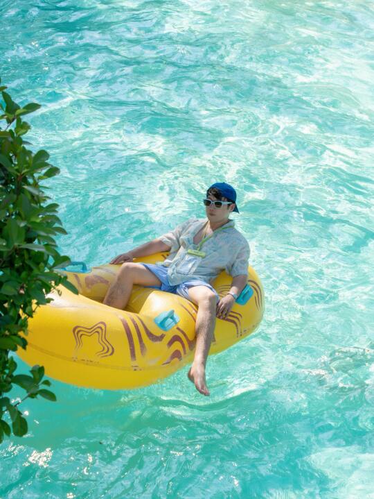 躺在浮圈上随水漂流,懒人一秒get 水中躺平