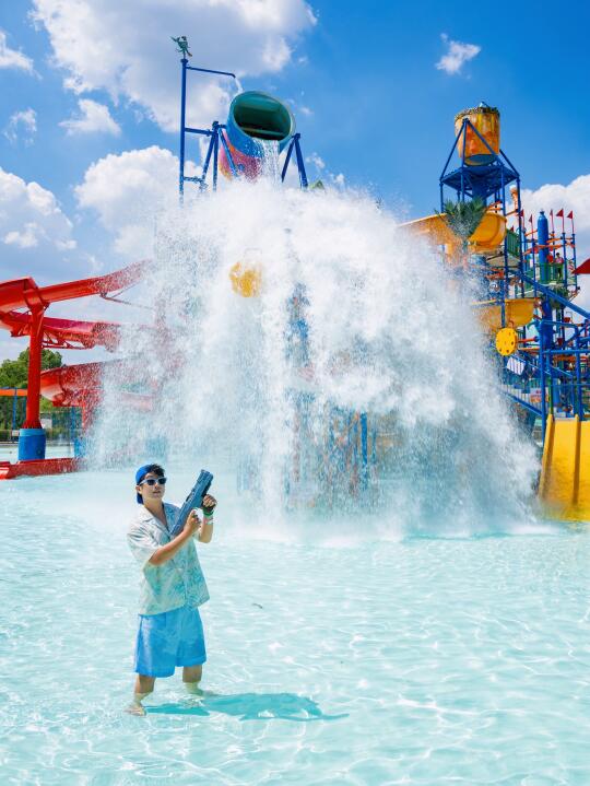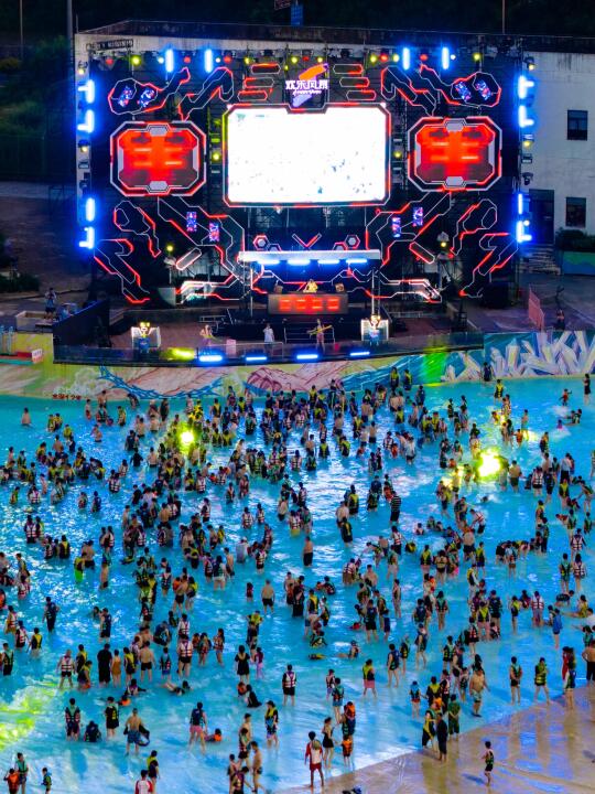 定时有三米高的海啸巨浪袭卷而来,随着舞台上的音乐一起水中蹦迪,还有夜场DJ趴一起感受属于这个夏季的狂欢