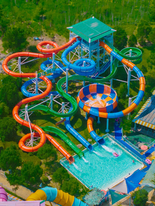 专门为孩子们打造的水上世界,五彩的水上滑滑梯和魔幻滑道深受孩子们的喜爱